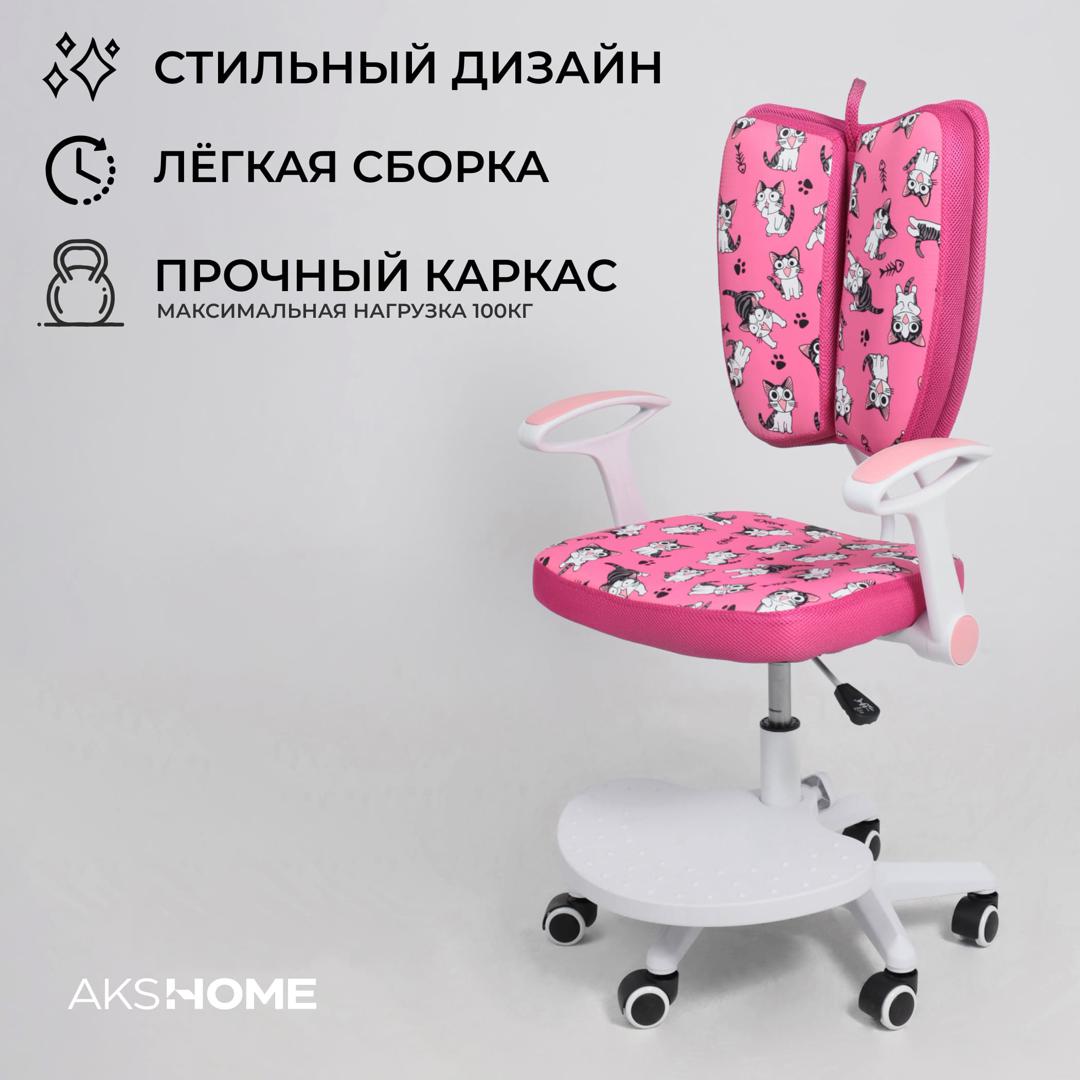 Кресло компьютерное AksHome Кресло поворотное Pegas, розовый с котятами, ткань арт. ZN-126036