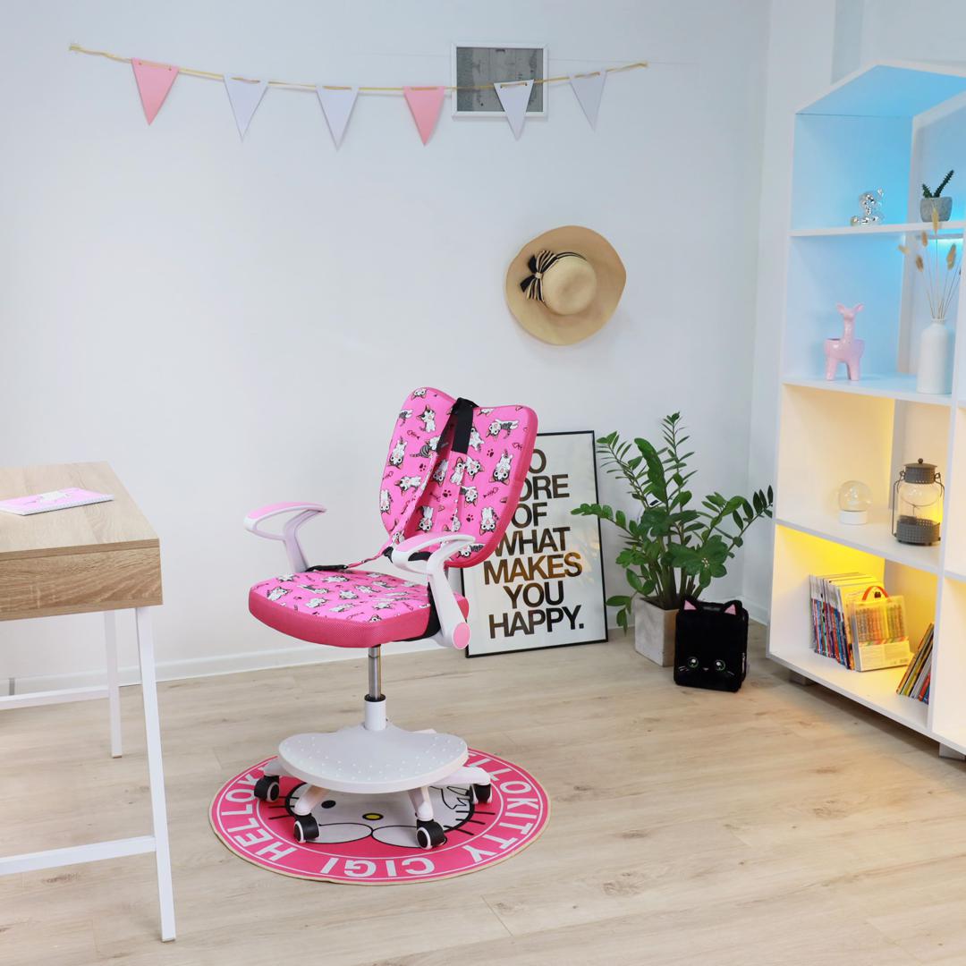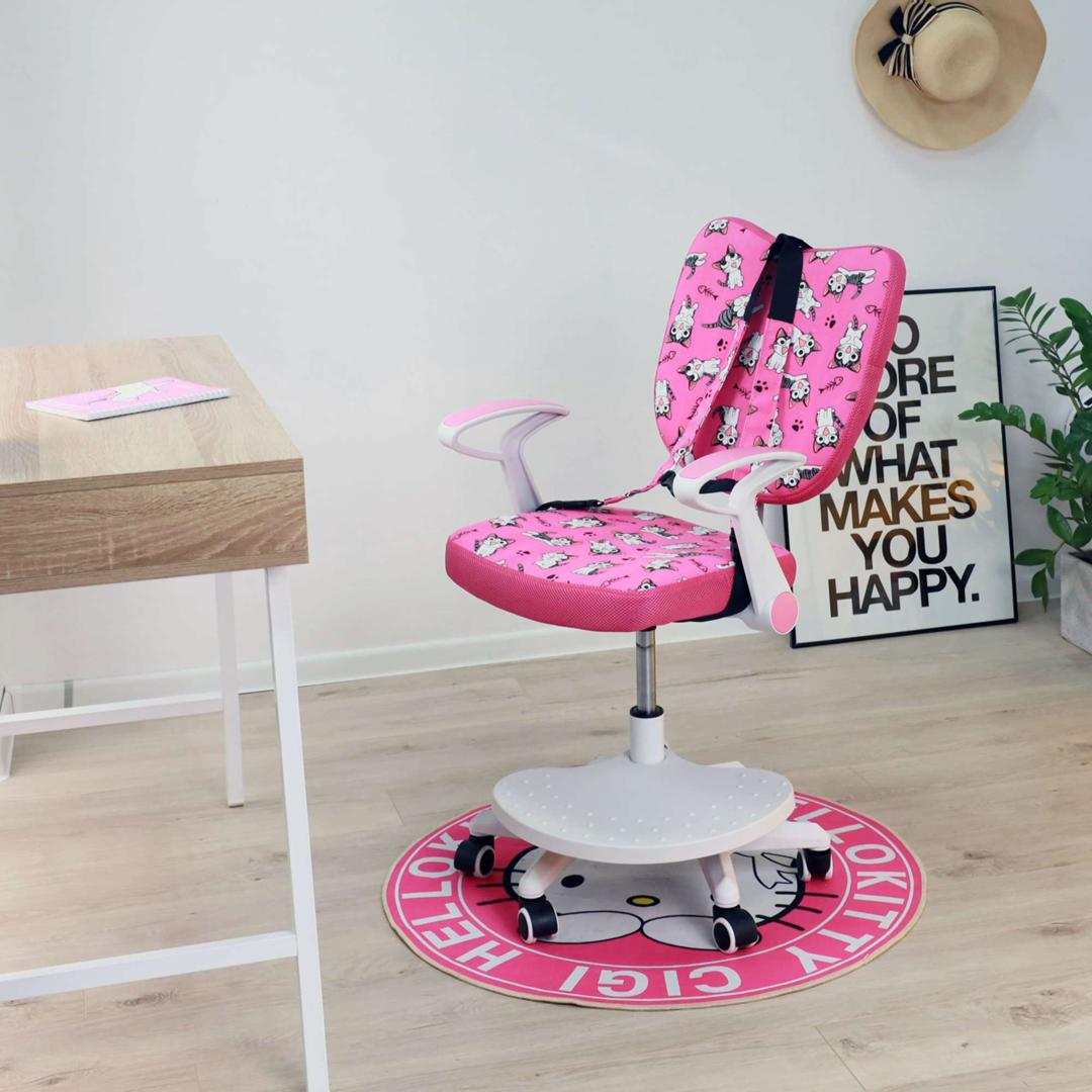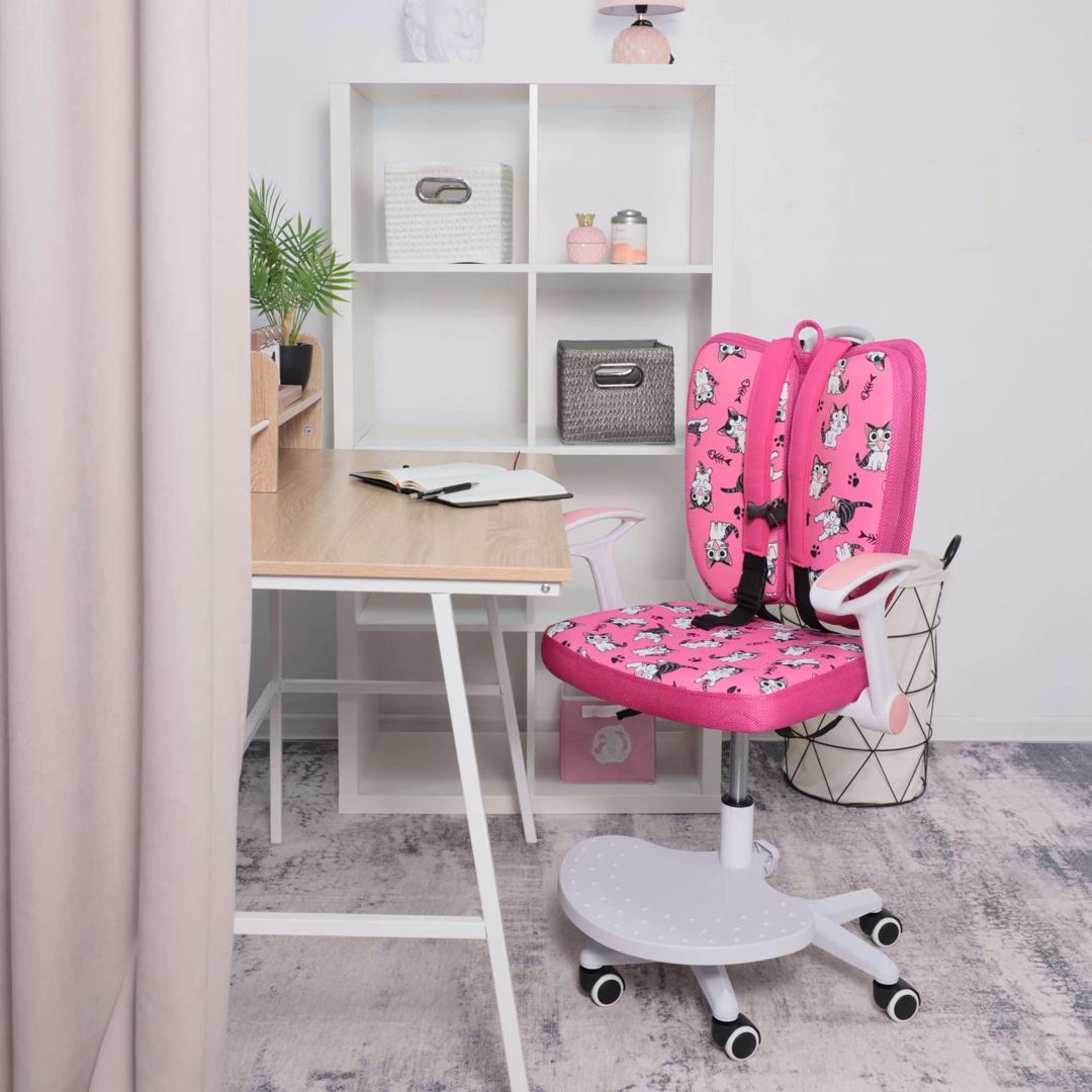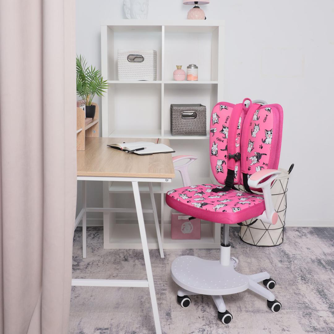 Наименование: Кресло поворотное Pegas, розовый с котятами, ткань