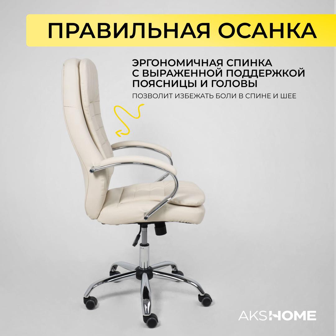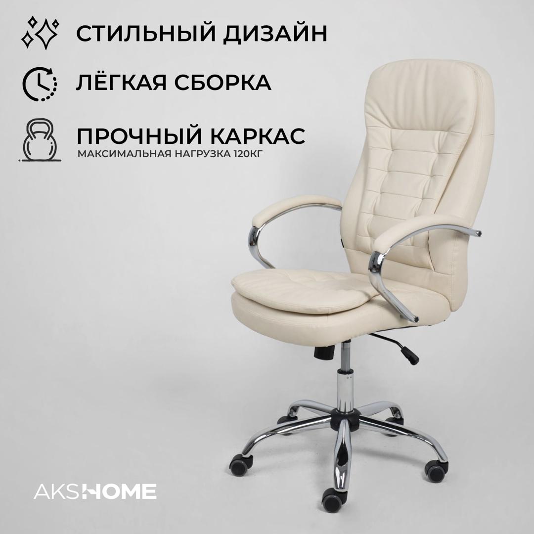 Кресло компьютерное AksHome Кресло поворотное Richard New, кремовый, экокожа арт. ZN-381506