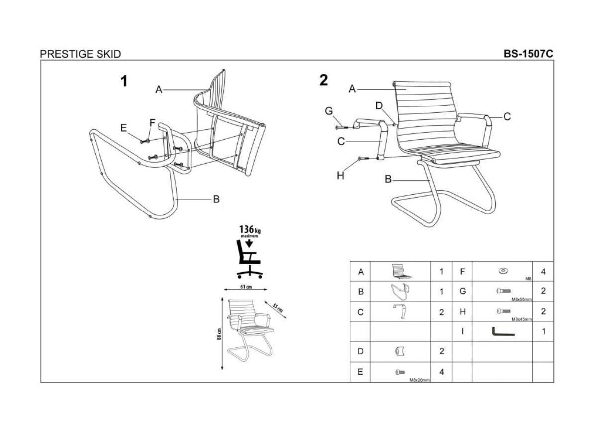 Вес, кг: 13 / Высота (см): 88 / Гарантия, мес.: 12 / Глубина (см): 55 / Глубина сиденья (см): 45 / Количество коробок: 1 / Материал сидения: экокожа / Механизм качания: нет / Назначение: для руководителей / Необходимость сборки: да / Размер упаковки 1: 0,80/0,39/0,50 / Страна производитель: Китай / Цвет: черный/хром / Ширина (см): 61