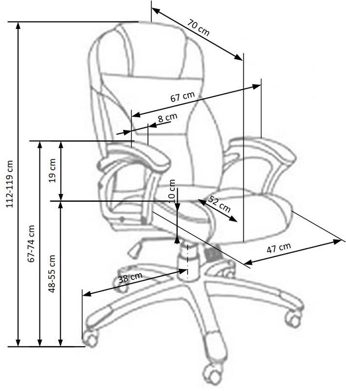 Вес, кг: 15 / Высота (см): 112-119 / Гарантия, мес.: 12 / Глубина (см): 70 / Глубина сиденья (см): 52 / Количество коробок: 1 / Материал сидения: экокожа / Механизм качания: TILT / Назначение: для руководителей / Необходимость сборки: да / Размер упаковки 1: 0,78/0,37/0,65 / Страна производитель: Китай / Цвет: черный/хром / Ширина (см): 67