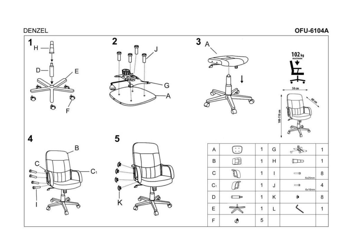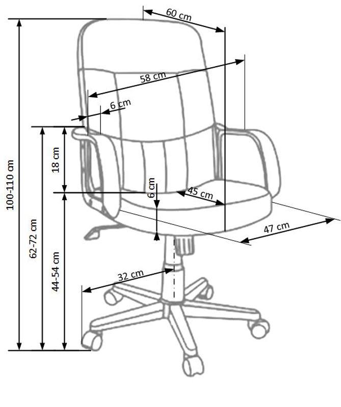 Вес, кг: 12 / Высота (см): 100-110 / Гарантия, мес.: 12 / Глубина (см): 60 / Глубина сиденья (см): 45 / Количество коробок: 1 / Материал сидения: экокожа / Механизм качания: TILT / Назначение: для руководителей / Необходимость сборки: да / Размер упаковки 1: 0,65/0,28/0,55 / Страна производитель: Китай / Цвет: черный / Ширина (см): 58