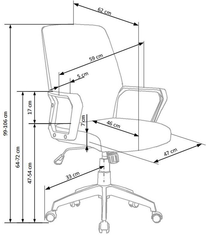 Вес, кг: 14 / Высота (см): 106 / Гарантия, мес.: 12 / Глубина (см): 62 / Глубина сиденья (см): 46 / Количество коробок: 1 / Материал сидения: ткань / Механизм качания: TILT / Назначение: для персонала, для руководителей / Необходимость сборки: да / Размер упаковки 1: 0,66/0,29/0,57 / Страна производитель: Китай / Цвет: серый / Ширина (см): 59