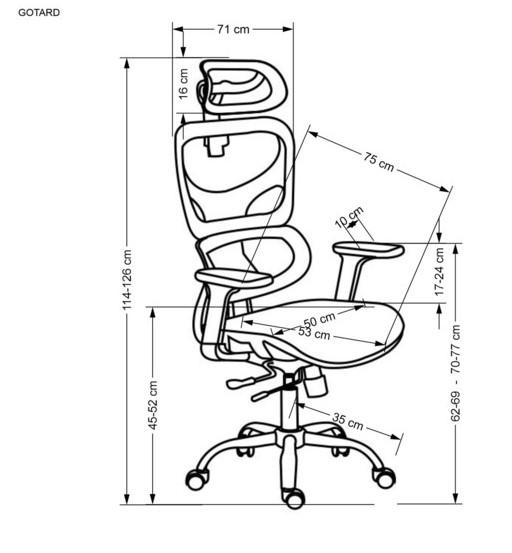 Вес, кг: 20 / Высота (см): 114-126 / Гарантия, мес.: 12 / Глубина (см): 75 / Глубина сиденья (см): 53 / Количество коробок: 1 / Материал сидения: ткань / Механизм качания: мультиблок / Назначение: для персонала, для руководства / Необходимость сборки: да / Размер упаковки 1: 0,63/0,33/0,57 / Страна производитель: Китай / Цвет: черный / Ширина (см): 71