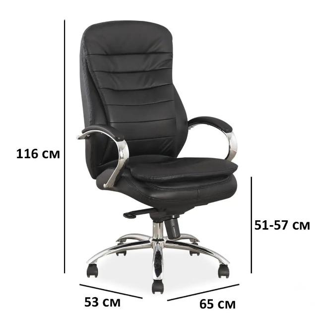 Вес, кг: 20,95 / Высота (см): 22 / Гарантия, мес.: 12 / Глубина сиденья (см): 53 / Количество коробок: 1 / Материал сидения: кожа / Механизм качания: мультиблок+TILT / Назначение: для руководителей / Необходимость сборки: да / Размер упаковки 1: 0,39/0,82/0,64 / Страна производитель: Китай / Цвет: черный/хром / Ширина (см): 65