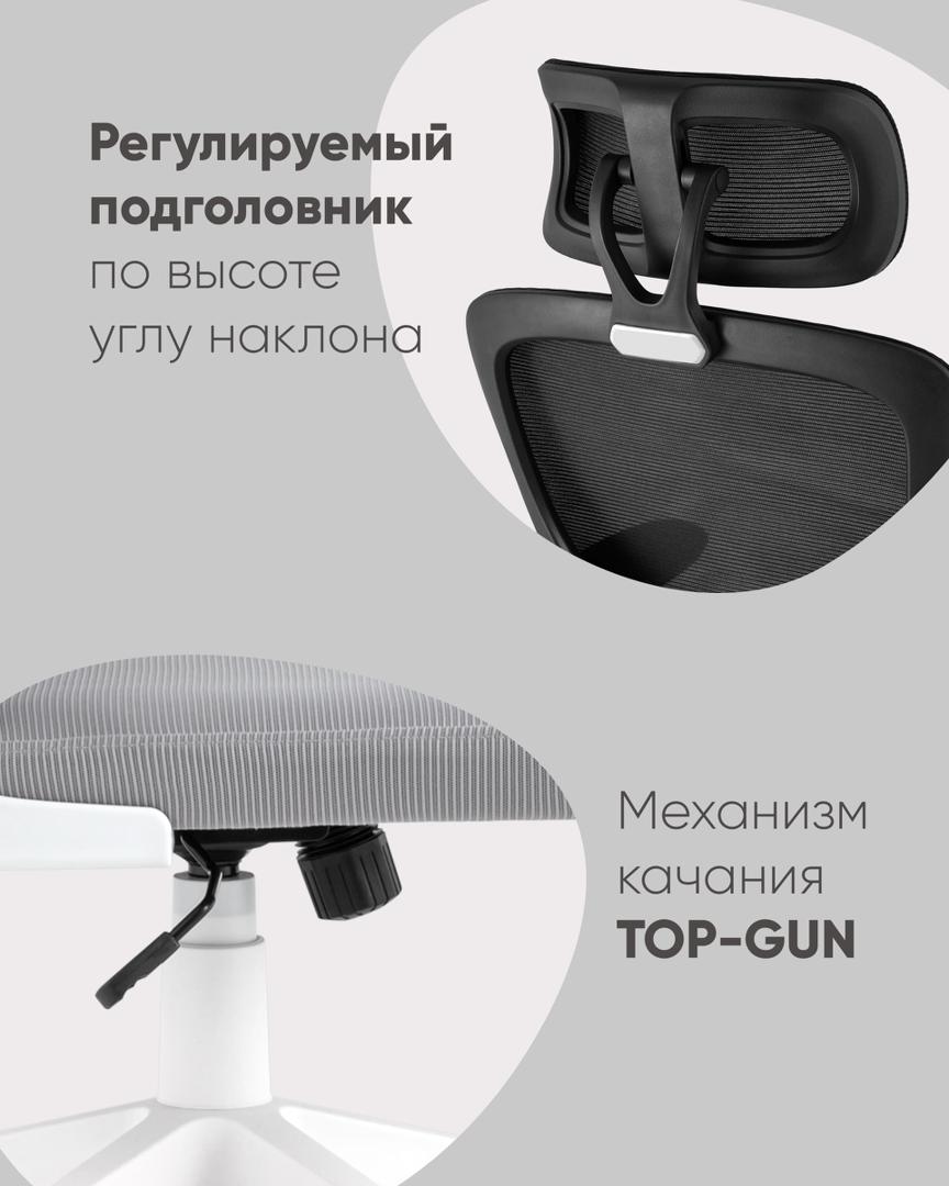 Компьютерное кресло TopChairs Airone офисное белое, обивка из сетки и текстиля, механизм качания Top Gun