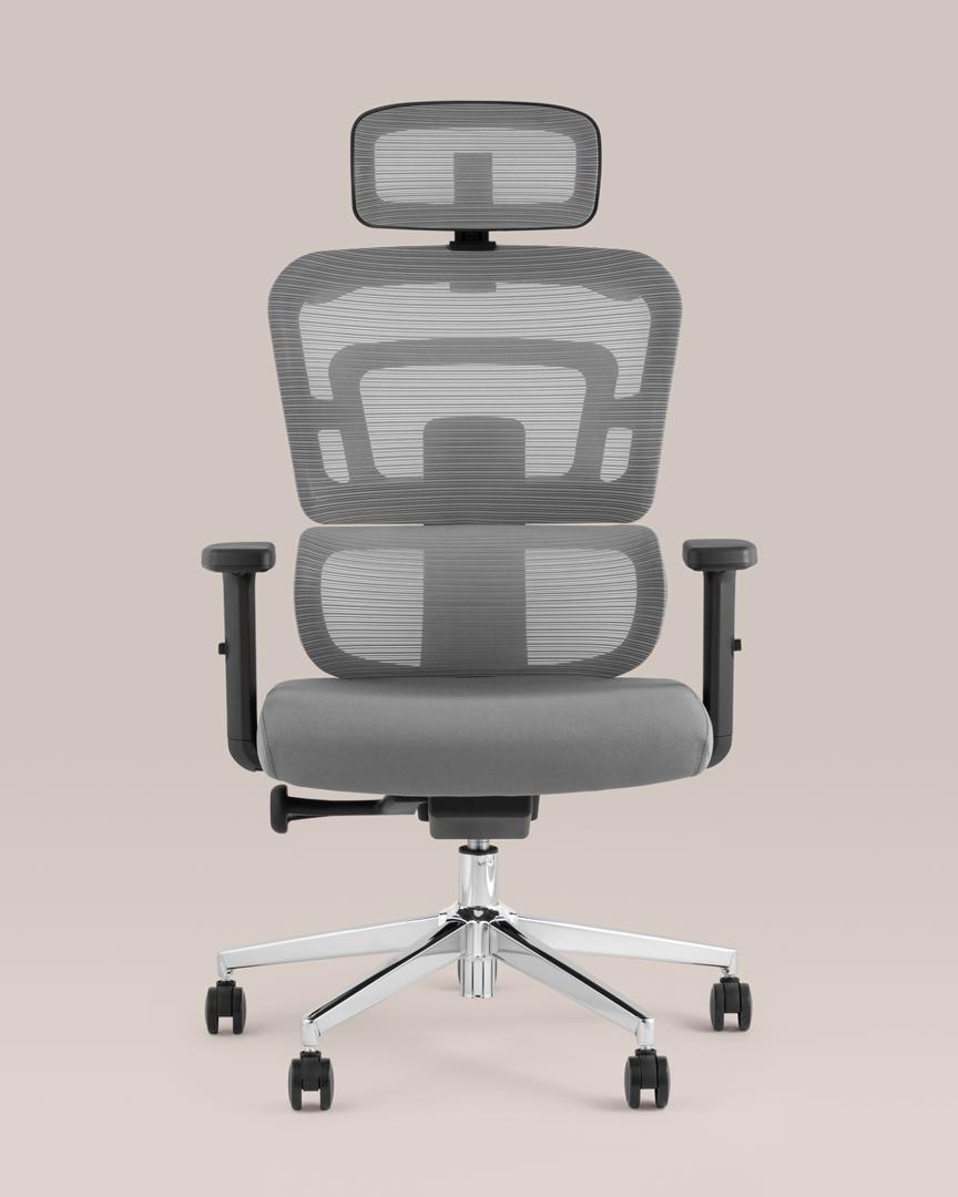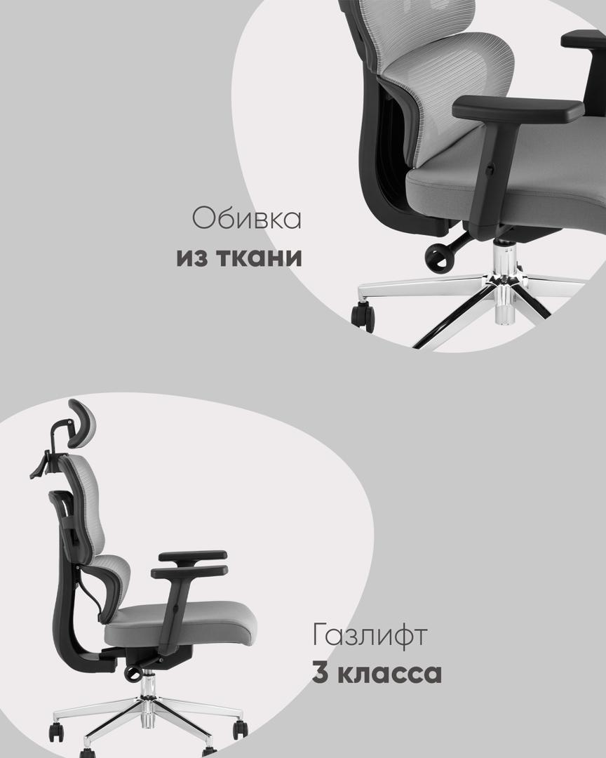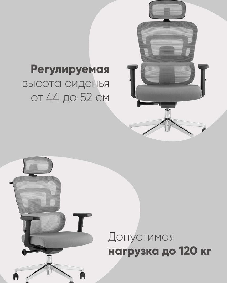 Компьютерное кресло TopChairs Techno офисное серое, обивка из сетки и текстиля, механизм качания мультиблок