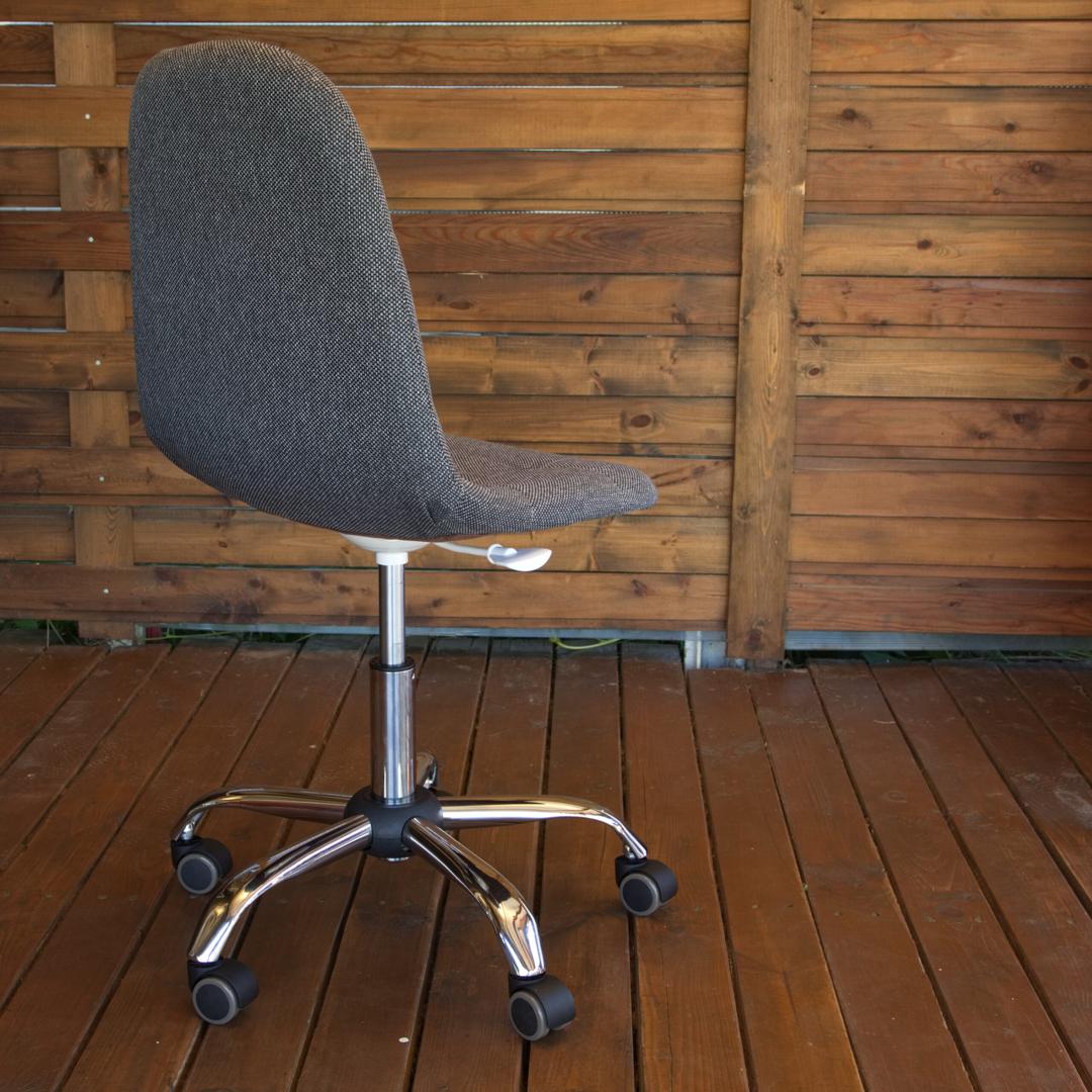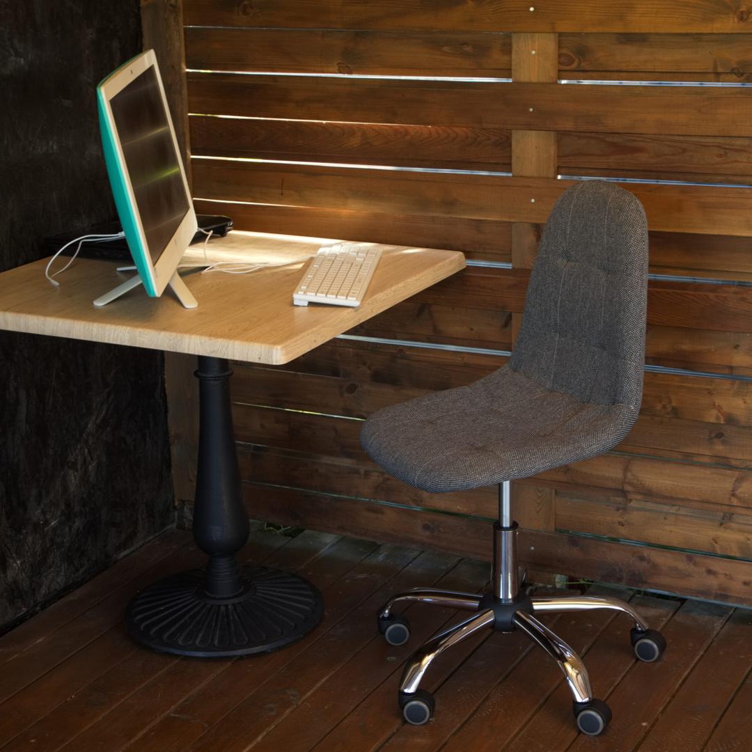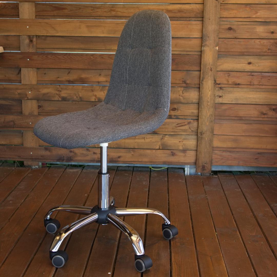 Современный компьютерный стул Пуффи удобный, прочный и красивый.Каркас из прочной фанеры, обивка из модной графитовой рогожки.Вращение на 360° и регулировка по высоте.Обрезиненные ролики для бесшумного перемещения.