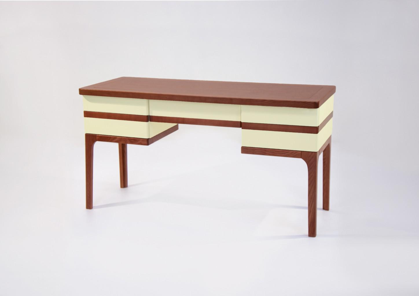 Стол рабочий Рио.Классический кабинетный стол в оттенках 80-х для делового человека предпочитающего неоретро. В коллекции шкафная группа и малые формы. Стол изготовлен из экологичных и натуральных материалов.Опоры стола выполнены из натурального дерева высокой плотности - дуб. В этой коллекции столешница выпускается в МДФ со шпоном дуба по технологии Файн-Лайн. Фасады выполнены из МДФ с покрытием эмалью (производство - Италия).Изготавливается на заказ в любом оттенке и широкой гамме размеров. За счёт высокой степени кастомизации подойдёт в любой интерьер.