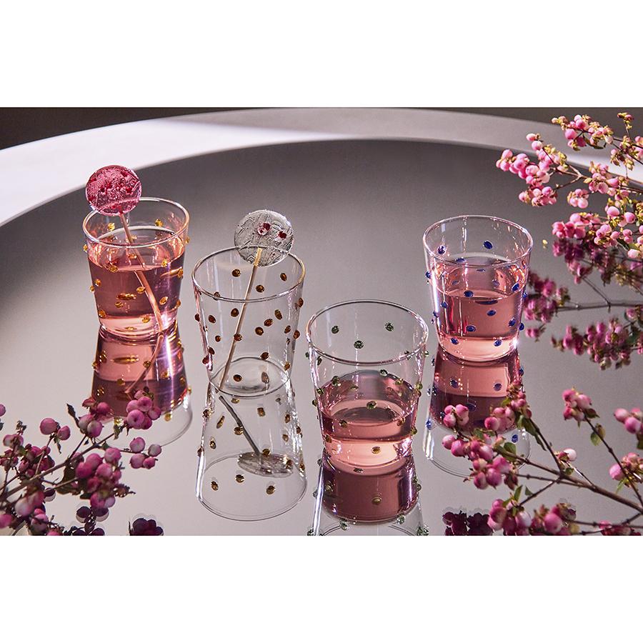 Набор из 4-х стаканов Pom-pon станет прекрасным приобретением для тех, кто любит необычные предметы сервировки. Коллекция привлекает внимание интересным дизайном – стенки посуды украшает объемный декор в виде застывших цветных капель. Особенности и преимущества: - Стаканы выполнены из боросиликатного стекла, что делает их практичными и долговечными. - Материал отличается повышенной прочностью, не содержит в своем составе вредных соединений и легко моется. - Декор в виде цветных капель делает дизайн уникальным и узнаваемым. Материал: боросиликатное стекло. Размеры: 8,5х6,8х11 см. Верхний диаметр: 8,5 см. Нижний диаметр: 6,7 см. Толщина стенки: 0,2 см. Объем: 425 мл. Количество в наборе: 4 шт. Стаканы рекомендуется мыть вручную в теплой мыльной воде с помощью мягкой губки. Запрещается использование абразивных материалов и агрессивной бытовой химии.