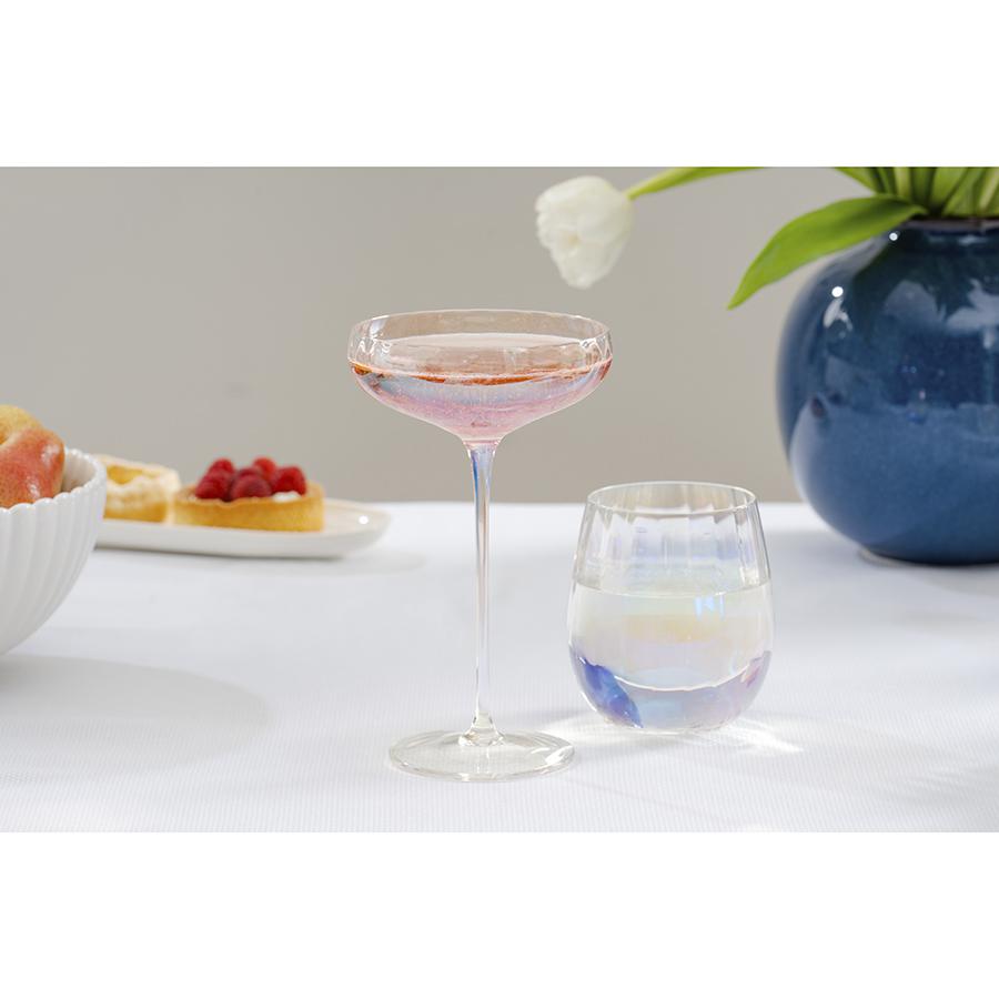 Линейка Gemma Opal привлекает лаконичным дизайном и необычным цветовым решением в виде радужных переливов. Вся посуда выполнена вручную из выдувного стекла. Такой способ производства позволяет играть с линиями и изгибами, создавая уникальные и неповторимые продукты. Изделия получаются более прочными, но при этом тоньше и прозрачнее аналогов из обычного стекла. Креманки Gemma Opal – эффектный способ подать к столу десерты или игристые напитки. В слегка волнистых стенках широкой чаши красиво преломляется свет, а удлиненная ножка делает силуэт более утонченным. Такая посуда создает праздничное настроение даже во время обычного приема пищи. Материал, из которого выполнены изделия, долговечный, не требует сложного ухода. Комбинируйте предметы из одноименной линейки – декантер, бокалы, стаканы для воды, чтобы создать завершенную композицию и удивить гостей изысканной сервировкой. Наши продукты прошли испытания на отсутствие в составе свинца и кадмия в соответствии со стандартными тестами FDA. Материал: выдувное стекло. Размеры: 10,7х10,7х18,6 см. Объем: 255 мл. Количество в наборе: 4 шт. Рекомендовано ручное мытье с помощью мягкой губки с жидким чистящим средством.