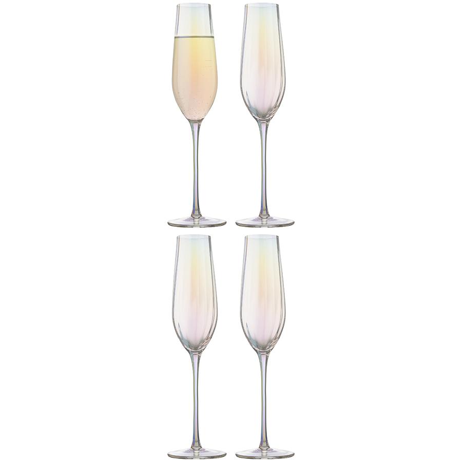 Линейка Gemma Opal привлекает лаконичным дизайном и необычным цветовым решением в виде радужных переливов. Вся посуда выполнена вручную из выдувного стекла. Такой способ производства позволяет играть с линиями и изгибами, создавая уникальные и неповторимые продукты. Изделия получаются более прочными, но при этом тоньше и прозрачнее аналогов из обычного стекла. Бокалы для шампанского Gemma Opal специальной вытянутой формы позволят дольше любоваться стройными рядами пузырьков и раскроют все тонкости вкуса и аромата игристого напитка. Зауженная верхняя часть минимизирует соприкосновение жидкости с воздухом, что обеспечивает более медленное испарение углекислоты. Удлиненная ножка делает силуэт утонченным и не дает вину нагреваться от тепла руки. Материал, из которого выполнены изделия, долговечный, не требует сложного ухода. Комбинируйте предметы из одноименной линейки – декантер, бокалы, стаканы для воды, чтобы создать завершенную композицию и удивить гостей изысканной сервировкой. Наши продукты прошли испытания на отсутствие в составе свинца и кадмия в соответствии со стандартными тестами FDA. Материал: выдувное стекло. Размеры: 7,2х7,2х26,7 см. Объем: 225 мл. Количество в наборе: 4 шт. Рекомендовано ручное мытье с помощью мягкой губки с жидким чистящим средством.