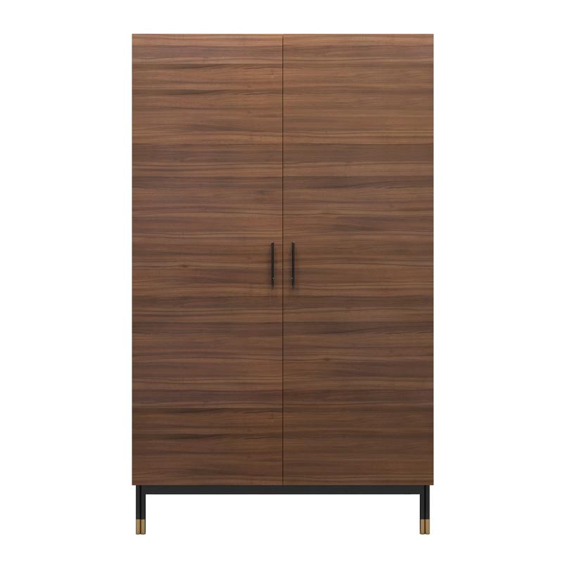 Гардероб с двумя распашными дверками от бренда Mod Interiors изготовлен из высококачественного шпонированного МДФ высокой плотности. Ножки изготовлены из металла. Металлические колпачки на ножках и металлические ручки подчеркивают изысканность модели. Внутреннее наполнение гардероба - 1 полка и штанга сверху.