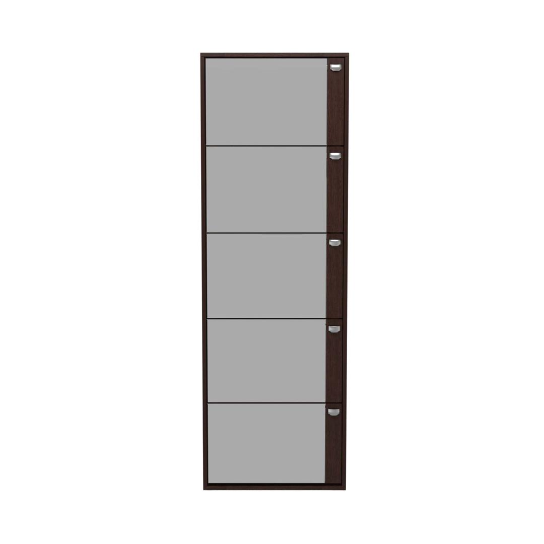 Обувница Leset Эдит 5S имеет большую высоту, что очень экономит пространство в узкой прихожей. Зеркальные фасады зрительно увеличивают интерьер и смотрятся лаконично. Откидные полки способны незаметно вместить в себя обувь всех сезонов, защитив её от пыли и шерсти животных.