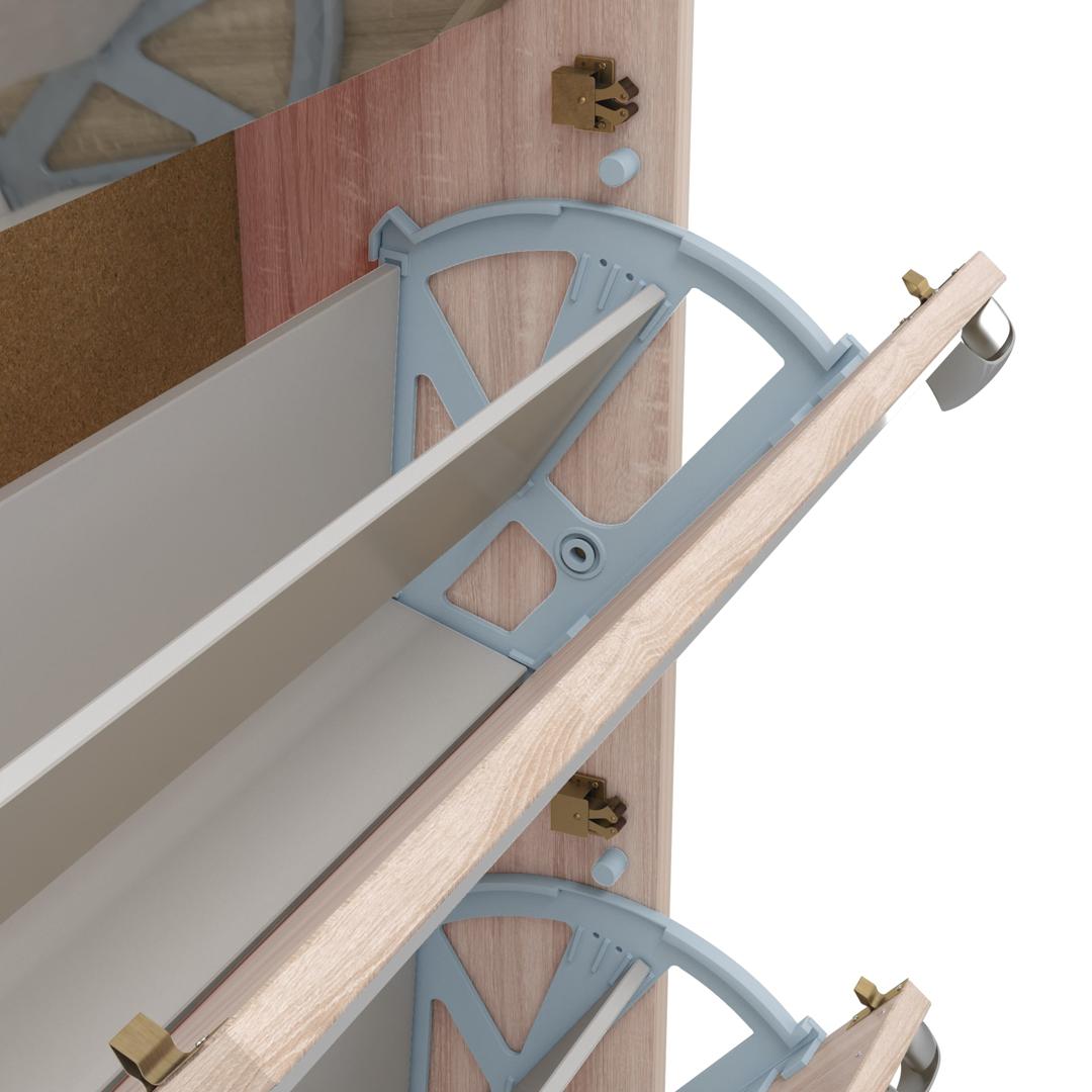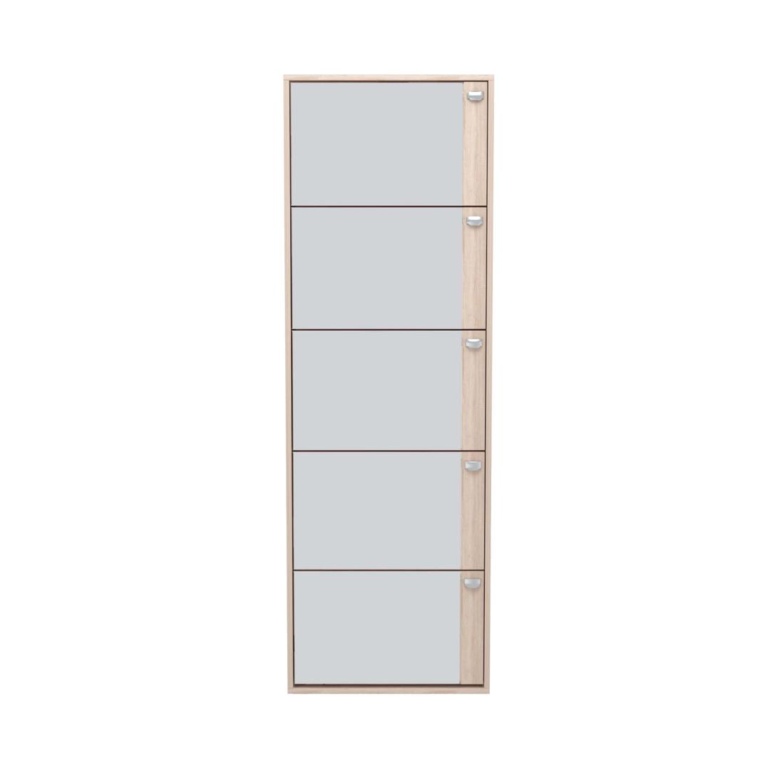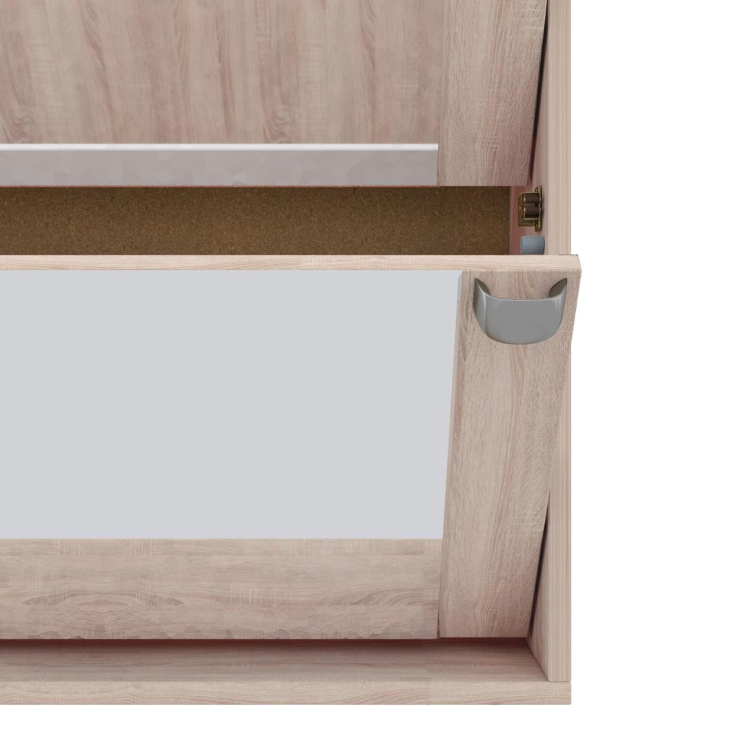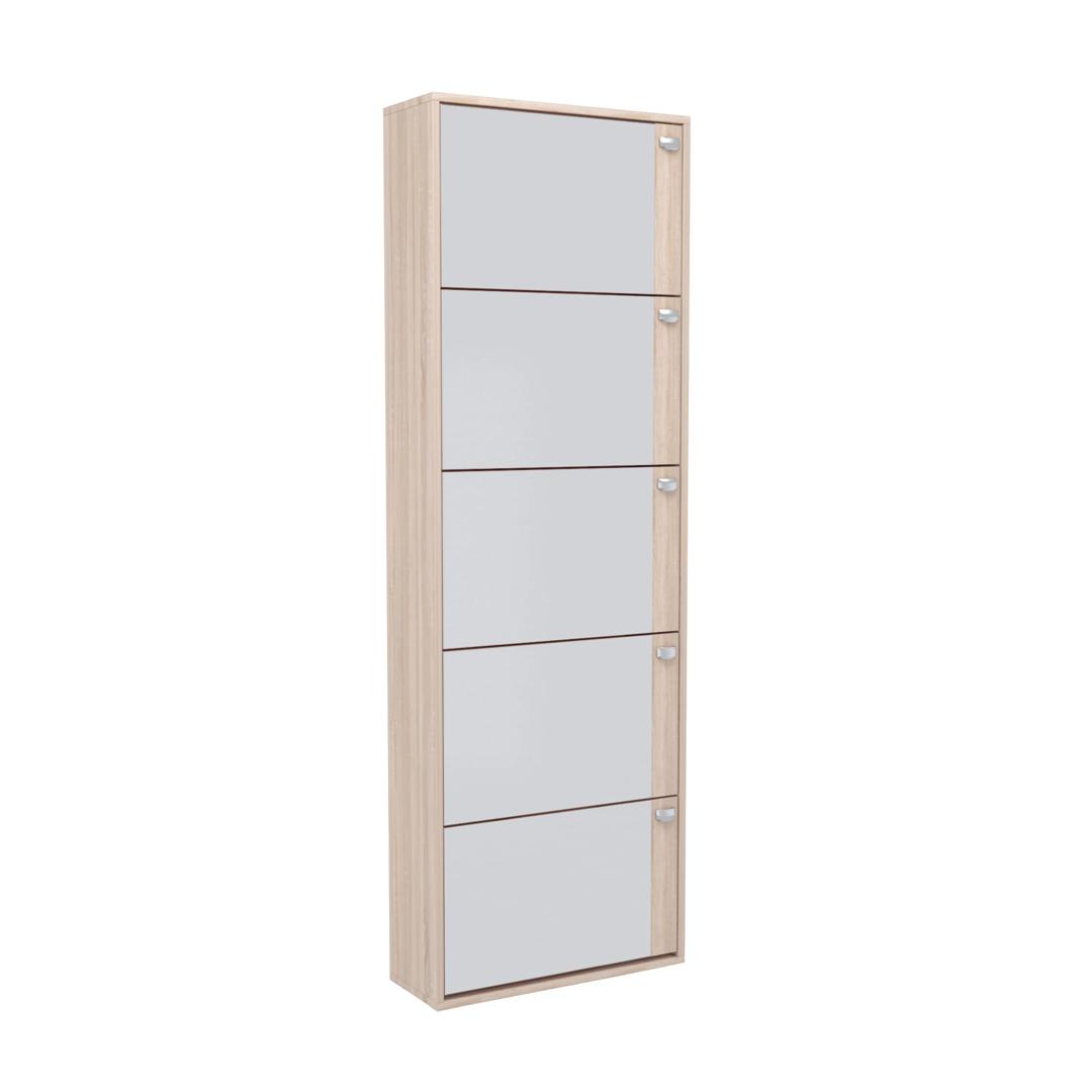 Обувница Leset Эдит 5S имеет большую высоту, что очень экономит пространство в узкой прихожей. Зеркальные фасады зрительно увеличивают интерьер и смотрятся лаконично. Откидные полки способны незаметно вместить в себя обувь всех сезонов, защитив её от пыли и шерсти животных.