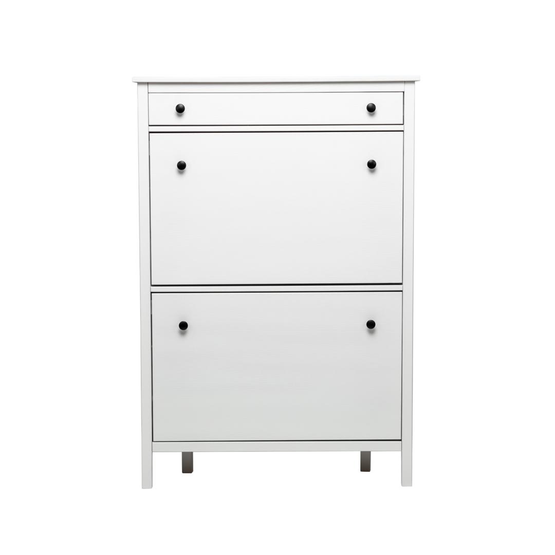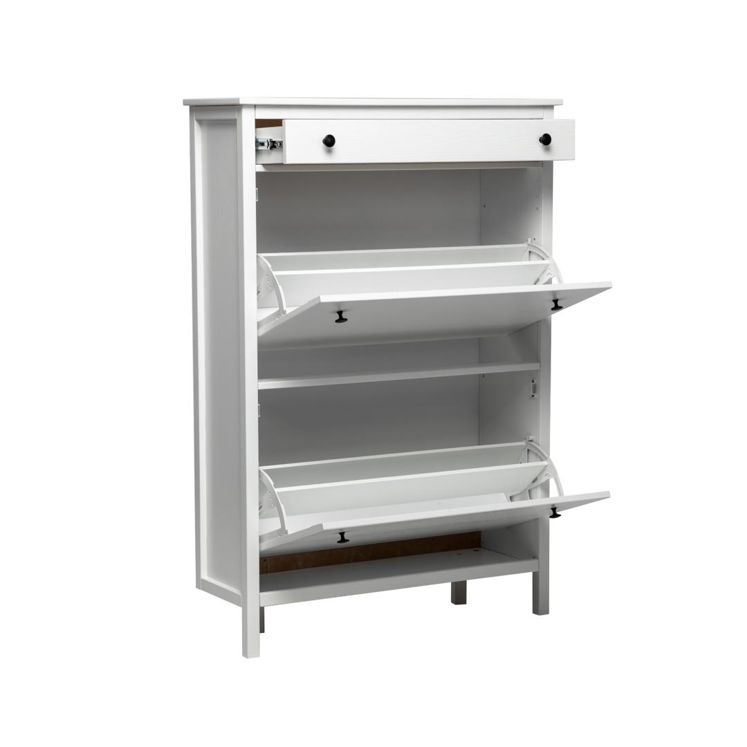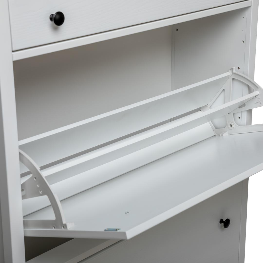 Для хранения обуви и других аксессуаров в условиях ограниченного пространства идеально подойдёт галошница-тумба для обуви Leset «Токе». Благодаря продуманной эргономике, обувница при минимальной глубине в 30 см вмещает более четырёх пар обуви на ящик. Этот предмет интерьера станет незаменимым в гардеробной, бане или на даче. Его можно использовать как тумбу для обуви или комод. Этажерка для обуви выполнена в сдержанном скандинавском стиле. Акцент сделан на ненавязчивом декоре из круглых металлических ручек, который поддерживает стилистику модели. Тумба доступна в двух универсальных цветах — белом и чёрном, что позволяет легко вписать её в любой интерьер. При изготовлении тумбы для обуви Leset «Токе» использовался экологически чистый, практичный и долговечный материал — МДФ с красивой текстурой дерева. Для устойчивости и надёжности конструкции предусмотрены высокие ножки (11 см) в два ряда, которые также облегчают уборку пылесосом.