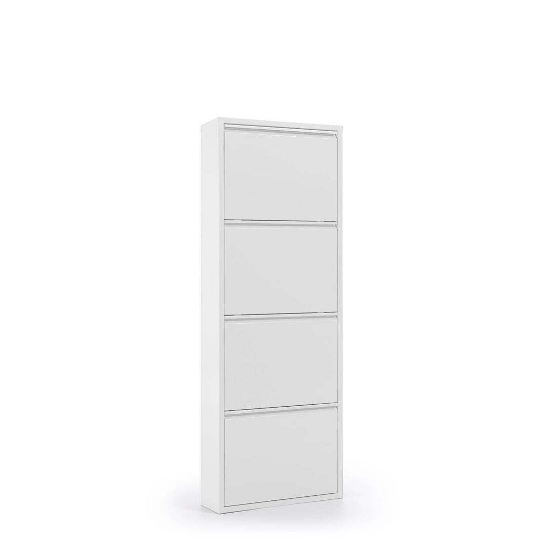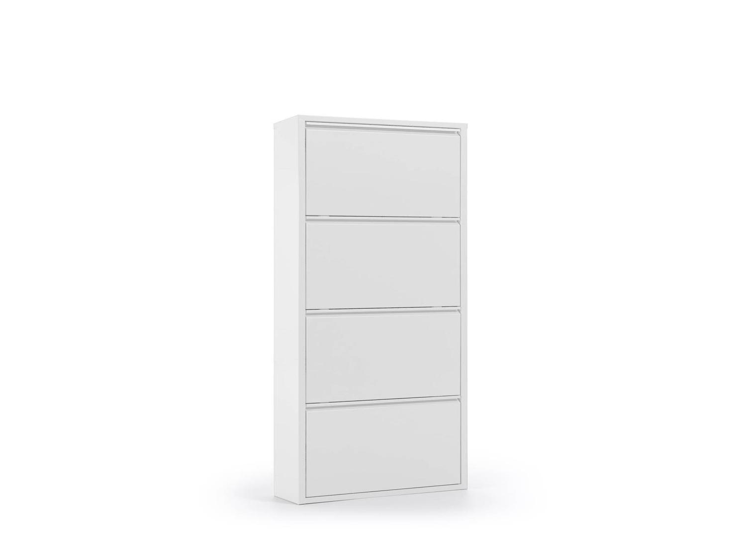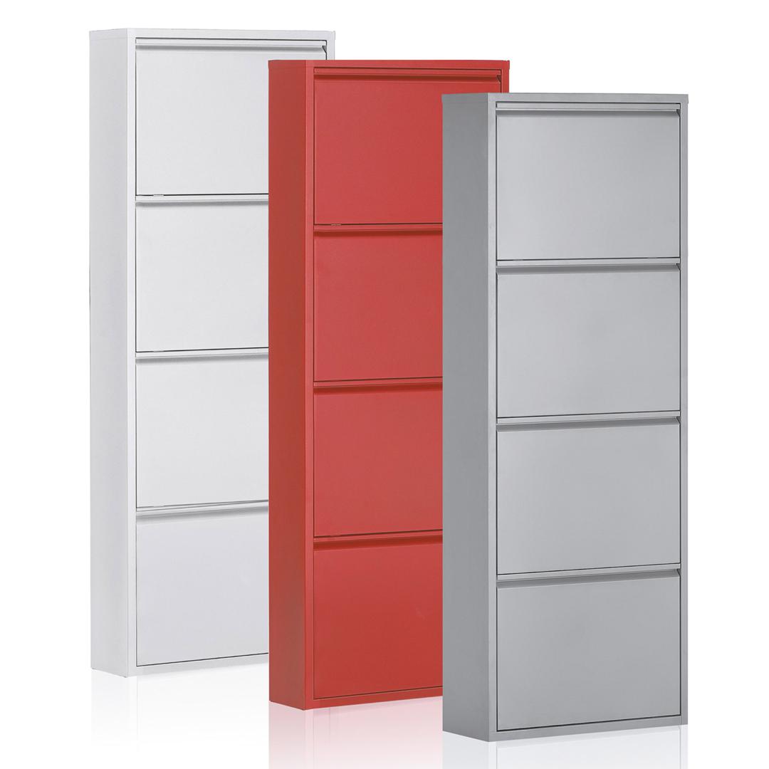 Металлический контейнер для обуви с 4 дверьми белого цвета.