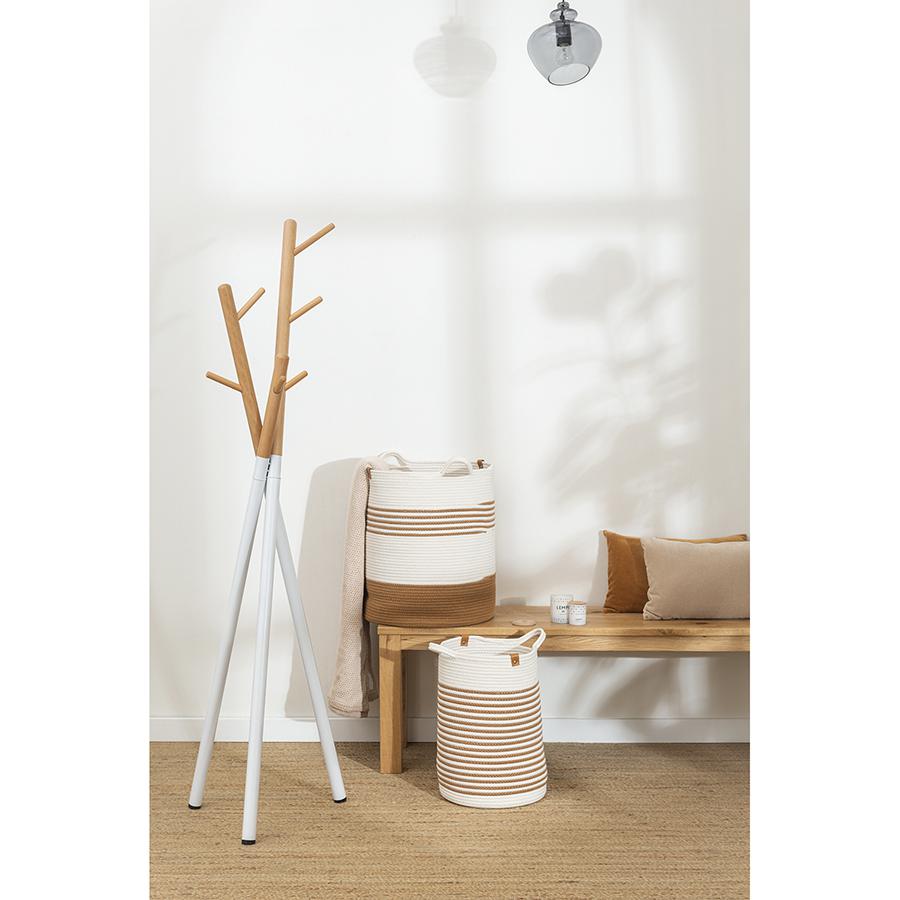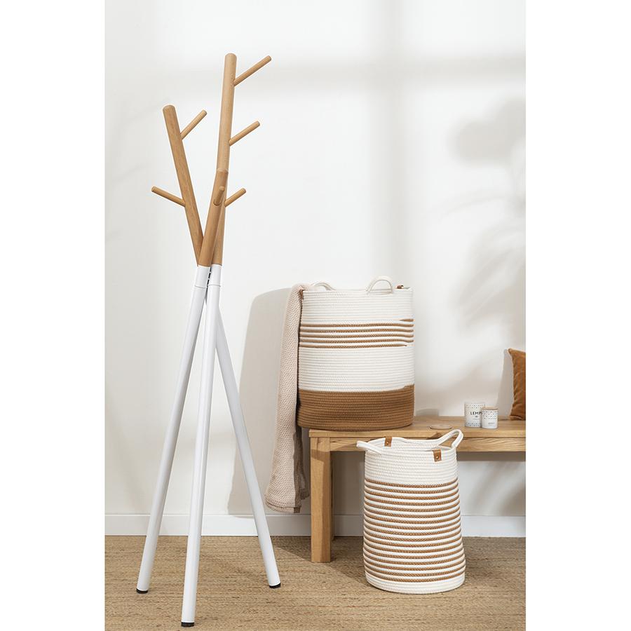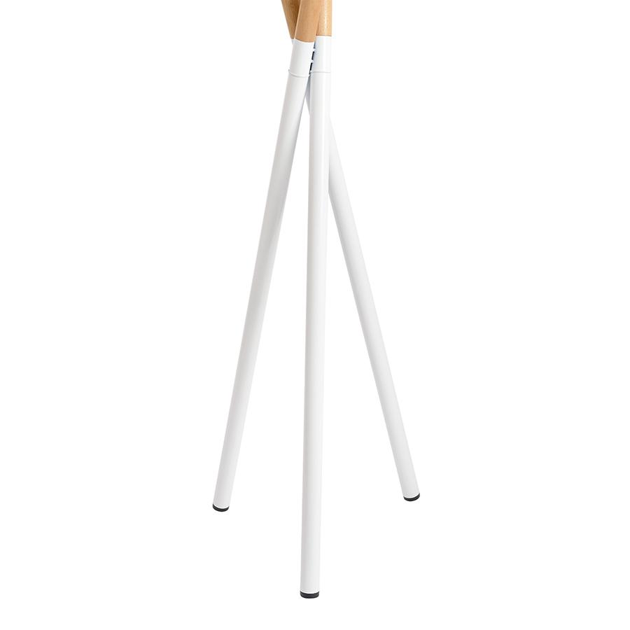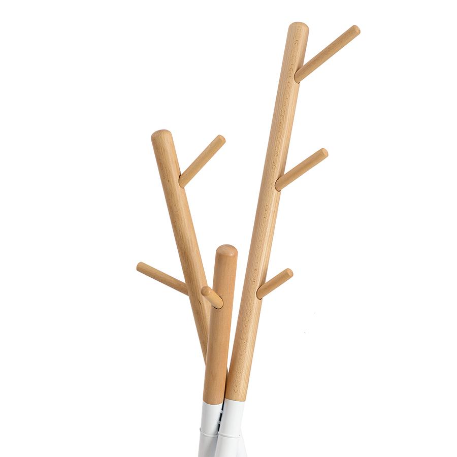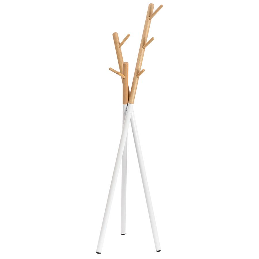 Вешалка напольная Amundsen – готовое решение для прихожей с современным или скандинавским дизайном. Сочетание металла и дерева смотрится стильно и оригинально, прекрасно комбинируется с различными вариантами оформления помещения. Конструкция необычной формы обращает на себя внимание, может служить декором интерьера. Практичные материалы обеспечивают изделию долгий срок службы. Каждый крючок выдерживает нагрузку до 5 кг, а вешалка в целом – не более 20 кг. Материалы: железо с порошковым покрытием, древесина бука. Высота: 172 см. Цвет: белый/натуральное дерево. Пыль и загрязнения с поверхностей можно удалять при помощи мягкой влажной салфетки. Запрещается использование абразивных материалов и агрессивной бытовой химии.