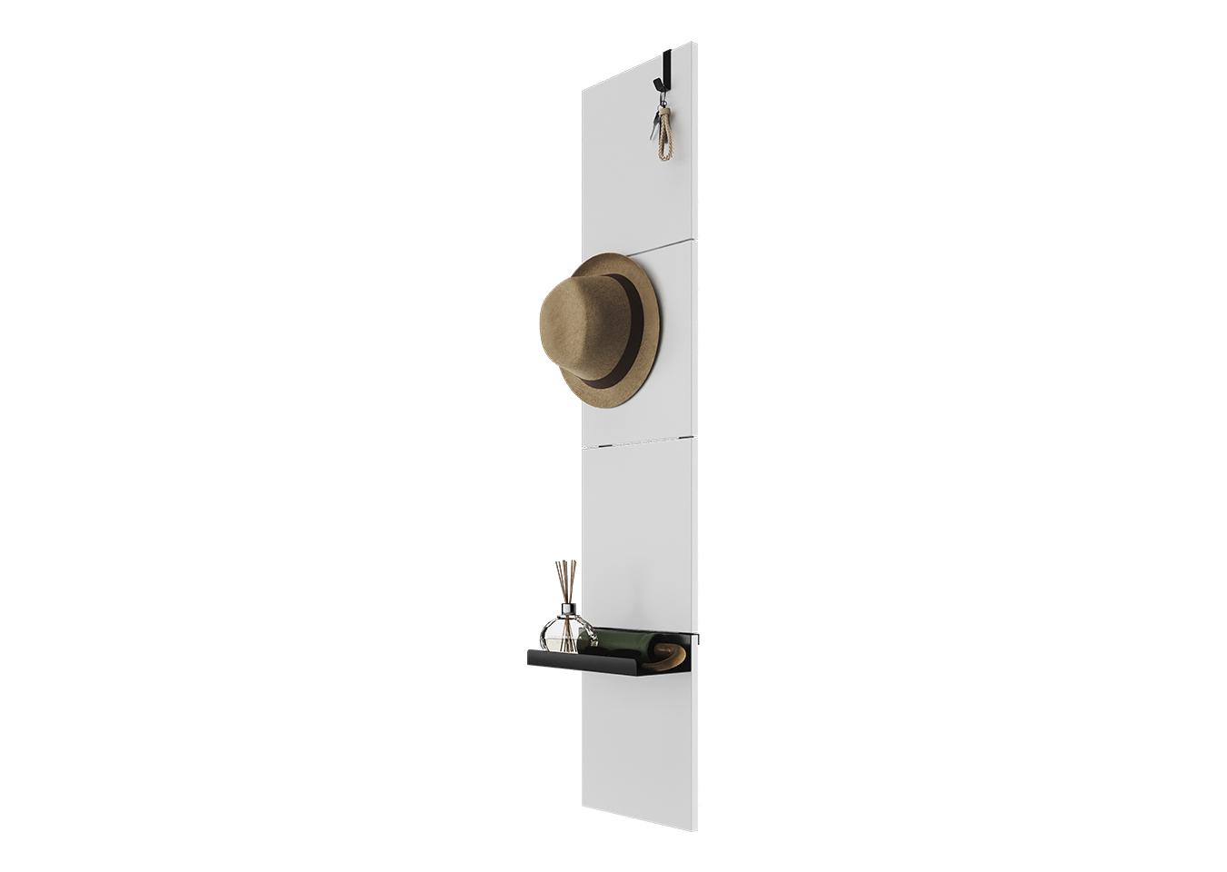 Вешалка Stripe M Комплект: - панель - крючок одинарный 1 шт - крючок двойной 1 шт - полка прямая 1 шт Габариты панели: - высота 1415 мм - ширина 300 мм Покрытие панели эмаль RAL 9003 Покрытие крючков и полок порошковая краска черный
