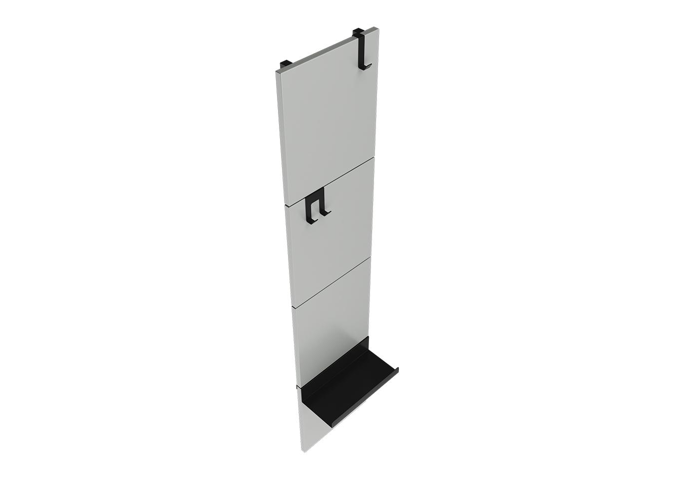 Вешалка Stripe M Комплект: - панель - крючок одинарный 1 шт - крючок двойной 1 шт - полка прямая 1 шт Габариты панели: - высота 1415 мм - ширина 300 мм Покрытие панели эмаль RAL 7035 Покрытие крючков и полок порошковая краска черный