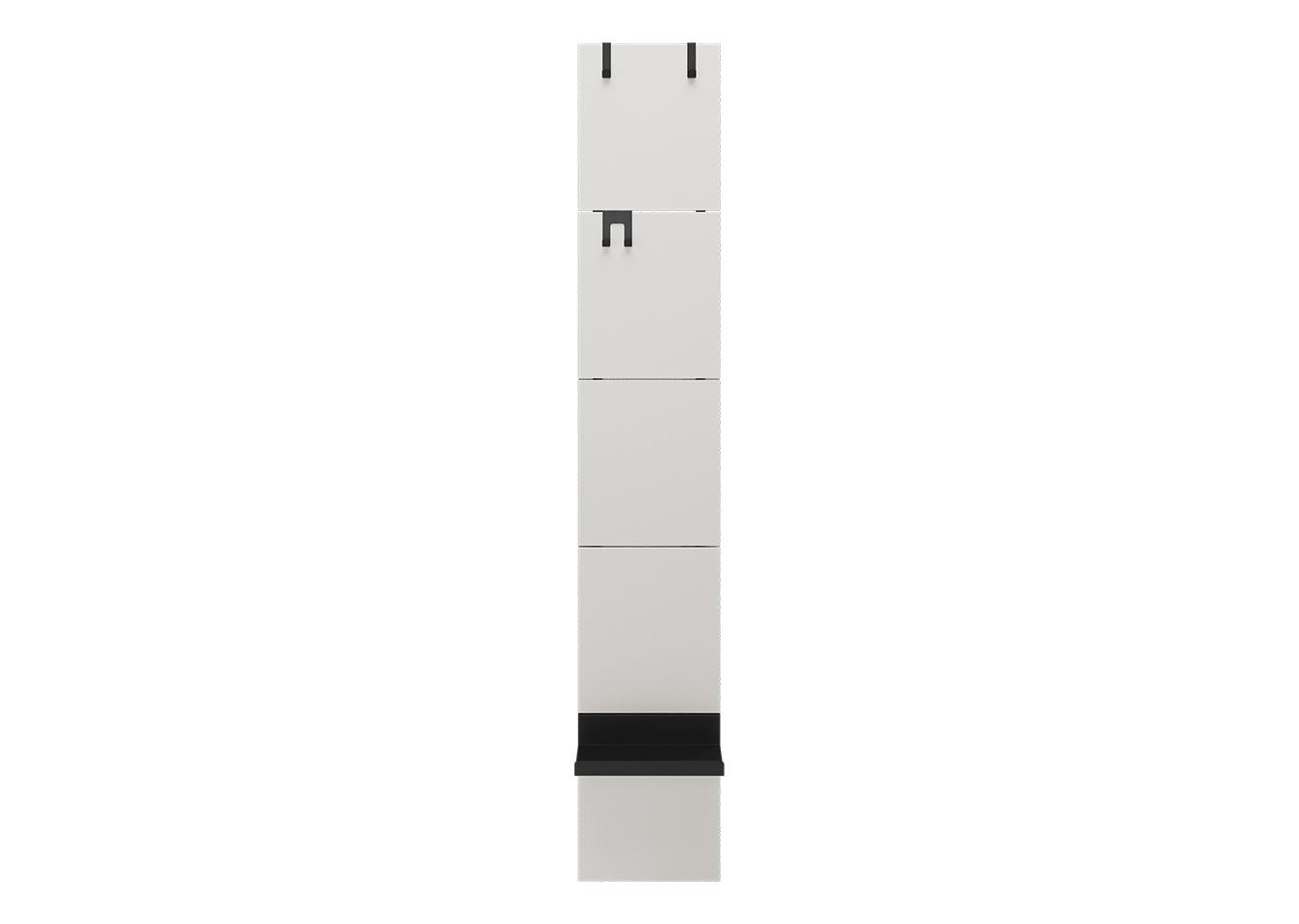 Вешалка Stripe L Комплект: - панель - крючок одинарный 2 шт - крючок двойной 1 шт - полка прямая 1 шт Габариты панели: - высота 1770 мм - ширина 300 мм Покрытие панели эмаль NCS S 0804-Y30R Покрытие крючков и полок порошковая краска черный