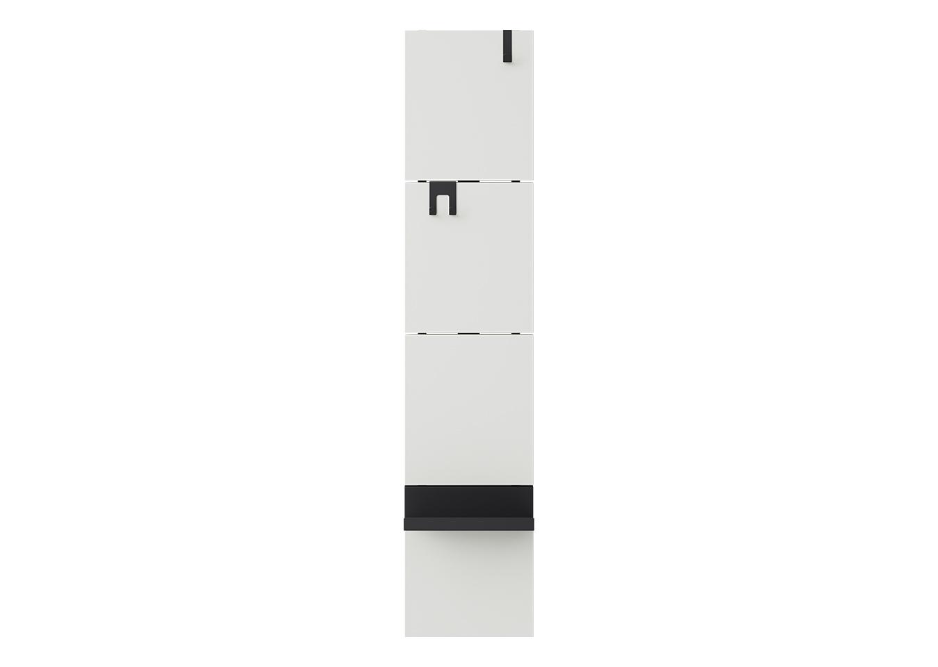 Вешалка Stripe M Комплект: - панель - крючок одинарный 1 шт - крючок двойной 1 шт - полка прямая 1 шт Габариты панели: - высота 1415 мм - ширина 300 мм Материал панелей ЛДСП, цвет белый (соответствует RAL 9010 / NCS S 0502-G50Y) Покрытие крючков и полок порошковая краска черный