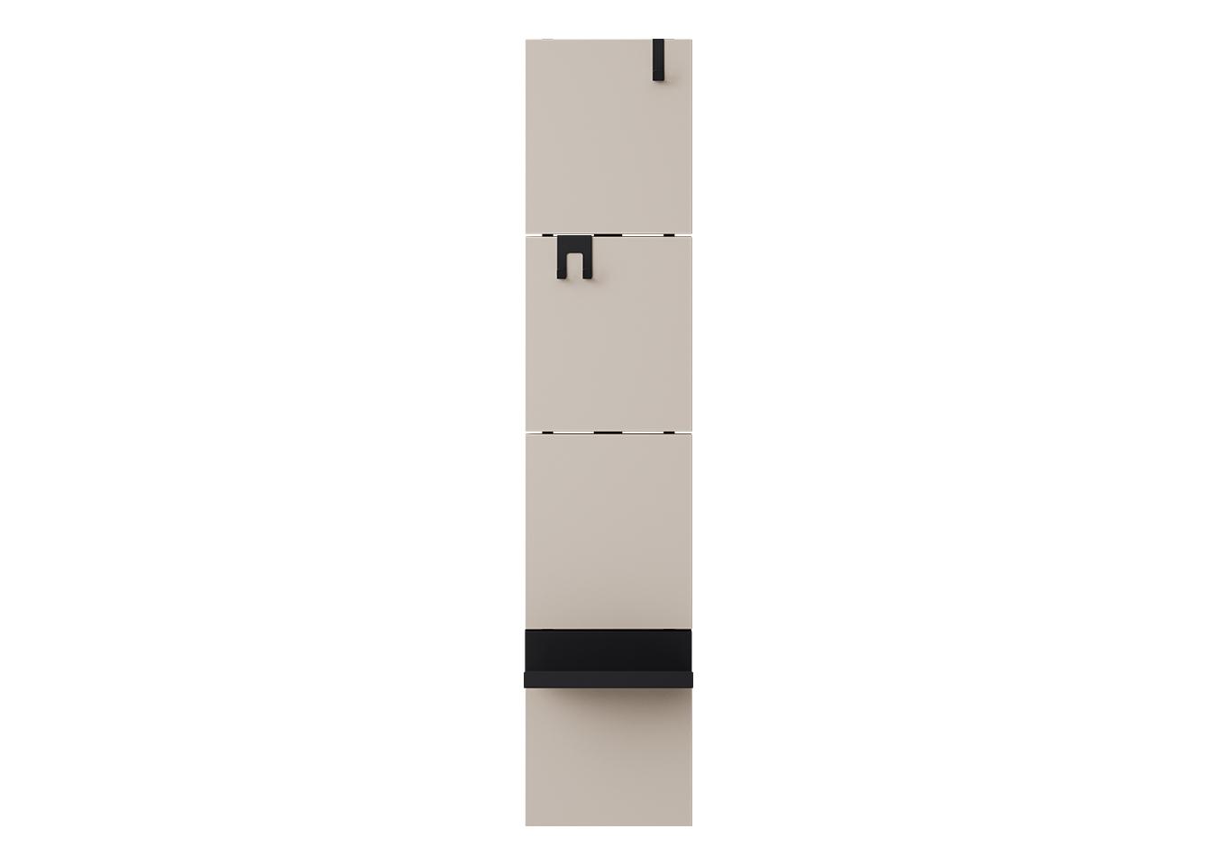 Вешалка Stripe M Комплект: - панель - крючок одинарный 1 шт - крючок двойной 1 шт - полка прямая 1 шт Габариты панели: - высота 1415 мм - ширина 300 мм Материал панелей ЛДСП, цвет кашемир (соответствует NCS S 2005-Y60R) Покрытие крючков и полок порошковая краска черный