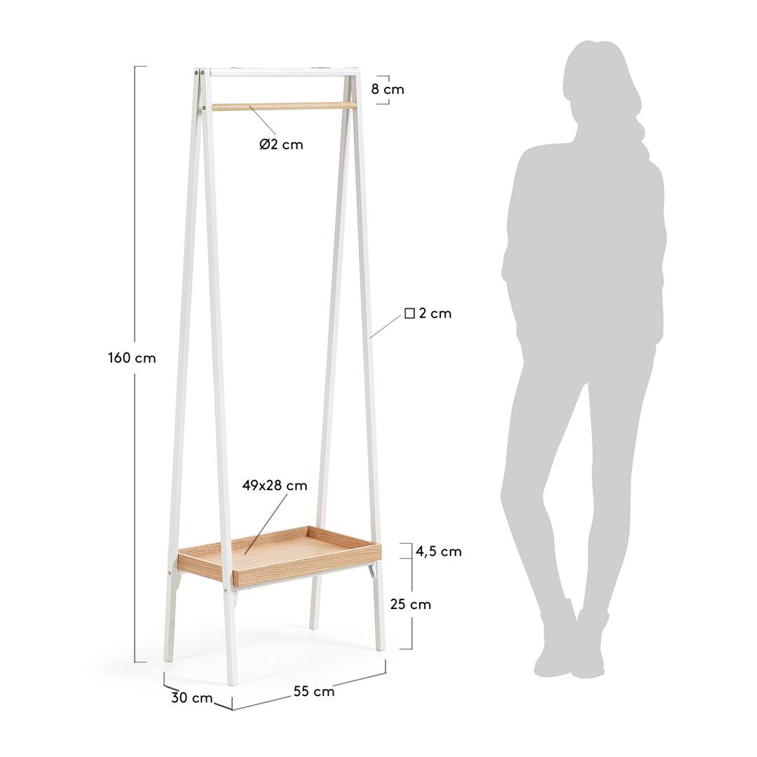 Вешалка для верхней одежды Belgrad от фабрики La Forma (ex Julia Grup) – для непохожей, облегченной обстановки для прихожей. Вешалка для верхней одежды Belgrad имеет совершенно потрясающий вид, который привнесет в вашу обстановку свежие интерьерные решения. Не имея каркаса, она будет выглядеть легко. Никаких больше нагромождений. Дышите свободно! Вешалка полностью деревянная. Она состоит из четырех опор, перекладин, штанги и полки для обуви. Опоры и перекладины изготовлены из массива дерева с белым матовым покрытием. Снизу на опорах установлены наконечники, которые улучшают устойчивость, сохраняют напольное покрытие. Толщина опор – 2 см. Штанга также деревянная, в натуральной отделке. Ее диаметр 2 см. Ящик для обуви сделан из шпонированного МДФ с лаковым покрытием. Высота его бортов – 4,5 см. Ящик опирается на перекладины, благодаря которым обеспечивается стойкость к весовым нагрузкам. Суммарная нагрузка на вешалку не должна превышать 20 кг. Размеры: ширина – 55 см, высота – 160 см, глубина – 30 см. Вес изделия – 6,7 кг Потребуется небольшая сборка.
