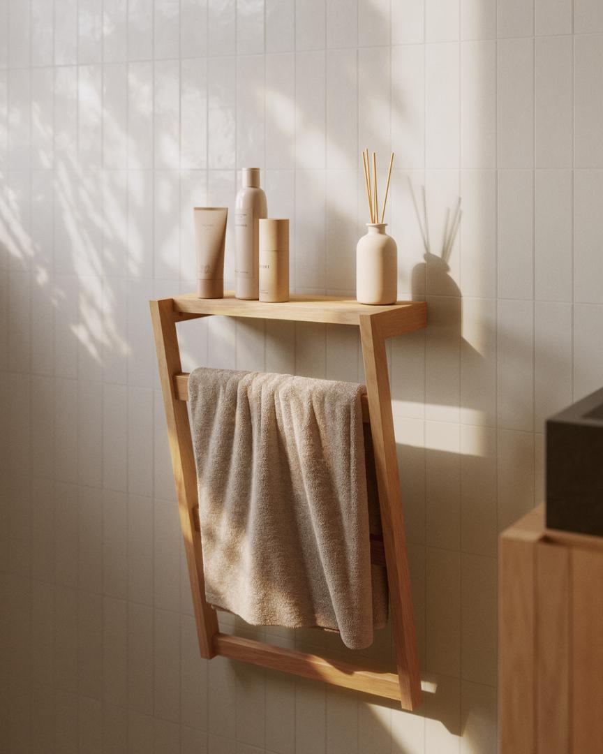 Вешалка для полотенец в натуральной тиковой древесине.