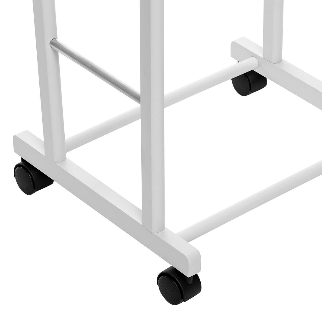 Изделие изготовлено из массива бука, покрыто высококачественным итальянским шелковисто-матовым лаком. Двойная вешалка предназначена для компактного хранения одежды, занимая минимальное пространство в вашем доме, при этом украшает интерьер. Алюминевые трубки являются элементами крепежа, которые не позволяют стойкам вешалки со временем расшатываться, а так же служат элементом декора. Наличие колес на вешалке, позволяет легко передвигать ее с одного места на другое. В данном изделии сочетаются простота и функциональность, аккуратность и красота.