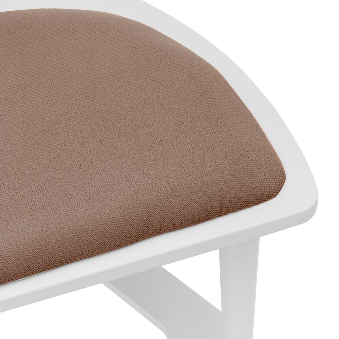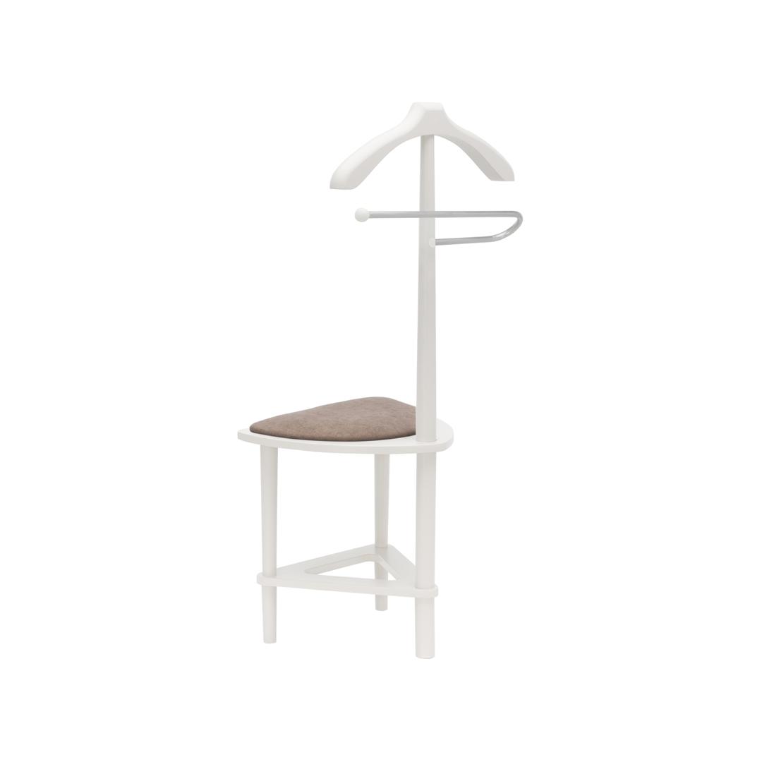 Плечики изделия и ножки изготовлены из массива бука, основание сиденье – МДФ, мягкий элемент: ткань микровелюр Candy mocco. Изделие покрыто высококачественным итальянским шелковисто-матовым лаком. Данная модель может использоваться не только, как вешалка, но и как стул, который способен выдержать нагрузку до 120кг. Металлическая трубка придает вешалке изящности, прекрасно гармонирует с общим видом изделия. На трубку возможно повесить брюки, юбки, ремни. Подойдет для использования как в стильной комнате, так и в прихожей.