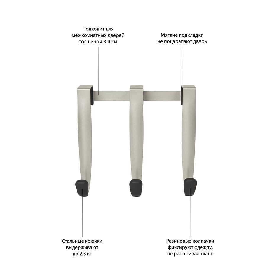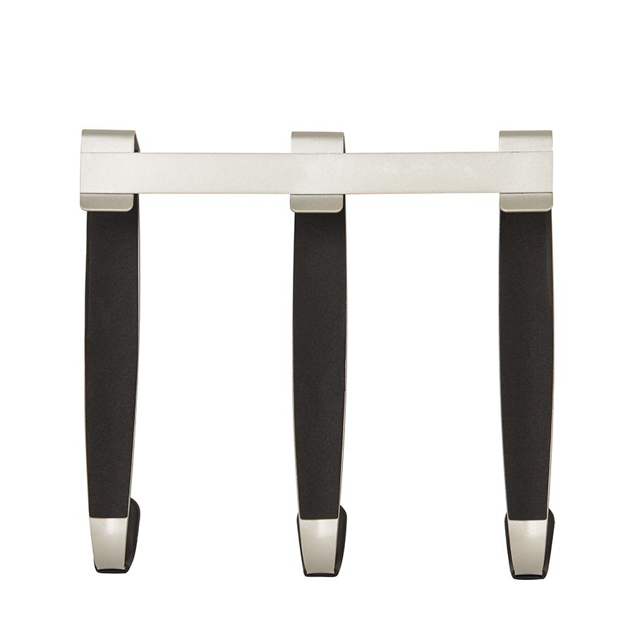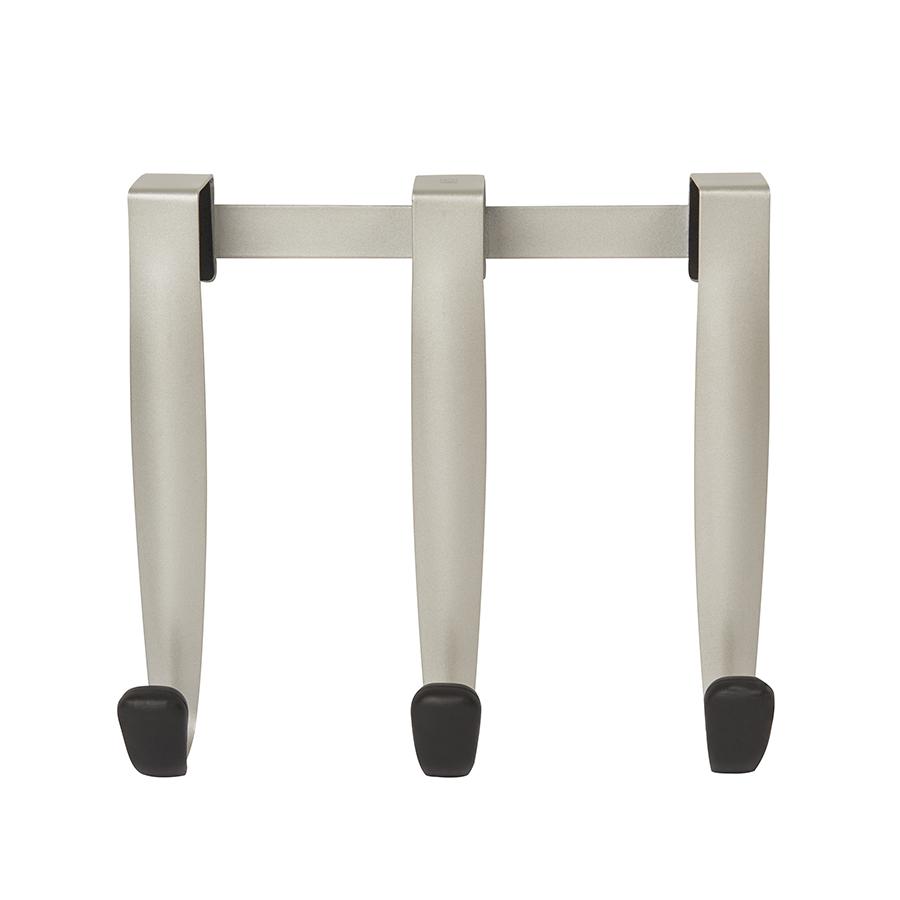 Надверная вешалка Schnook идеально дополнит интерьер кухни, прихожей или ванной комнаты. Автором идеи создания многофункциональной вешалки для дома стал талантливый дизайнер Thea Yuzyk. Аксессуар выполнен из штампованного металла высокого качества. Благодаря никелевому покрытию изделие не поддается коррозии и сохраняет привлекательный вид на протяжении всего срока эксплуатации. Изделие легко крепится к дверям без использования клея и дюбелей. Специальная накладка препятствует скольжению вешалки по поверхности. Аксессуар снабжен тремя крючками с резиновыми наконечниками, защищающими одежду от повреждений. Материалы: сталь, полипропилен.