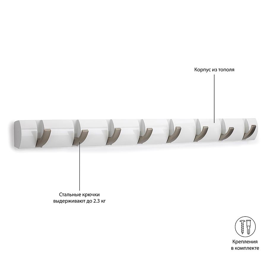 Вешалка Umbra Вешалка настенная flip, 84,5 см, белая, 8 крючков арт. 318858-660
