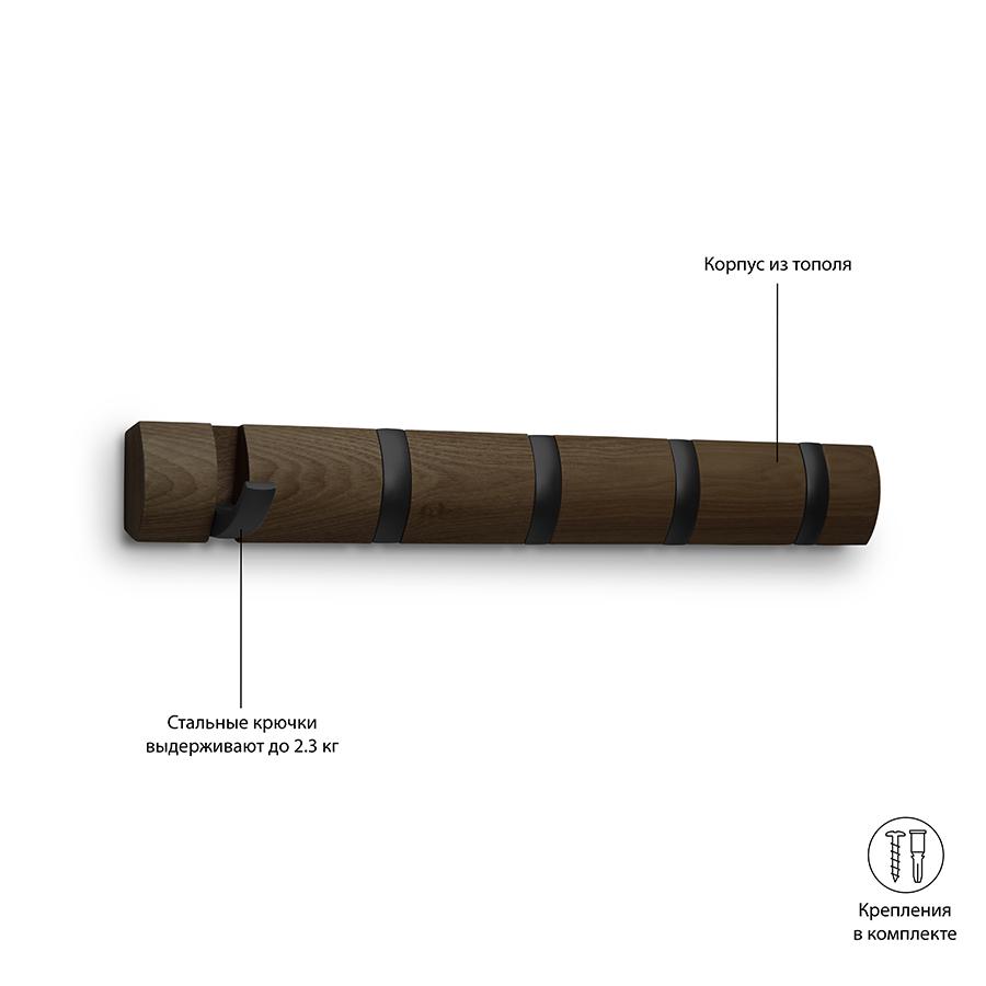 Вешалка Umbra Вешалка настенная flip, 50,8 см, черная/орех, 5 крючков арт. 318850-048