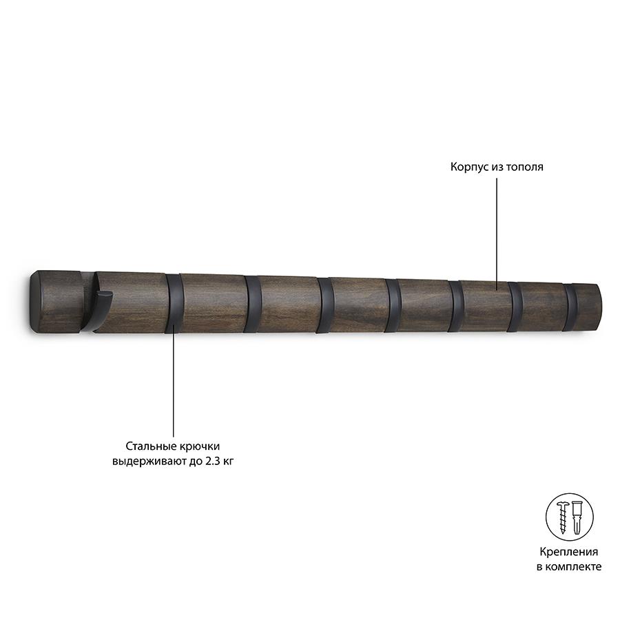 Вешалка Umbra Вешалка настенная flip, 84,5 см, черная/орех, 8 крючков арт. 318858-048