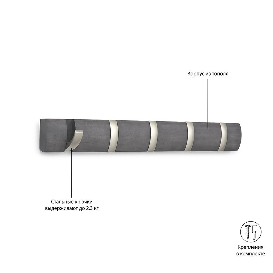 Вешалка Umbra Вешалка настенная flip, 50,8 см, дерево-никель, 5 крючков арт. 318850-1143