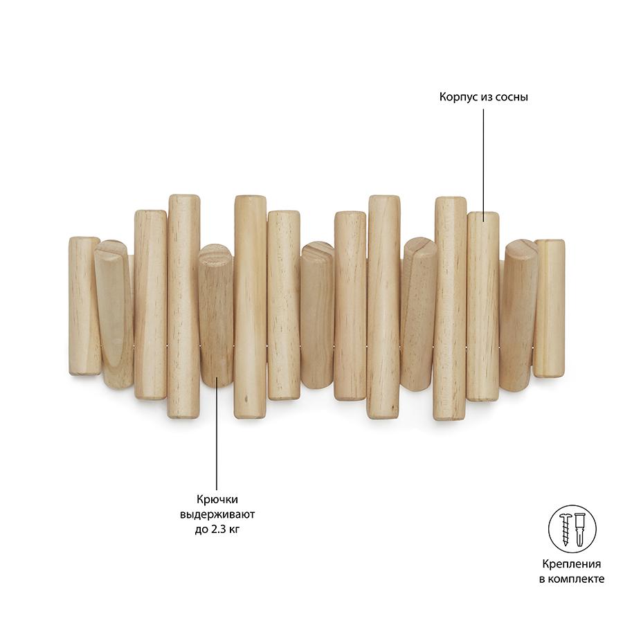 Вешалка Umbra Вешалка настенная picket, 5 крючков, натуральное дерево арт. 1011471-390