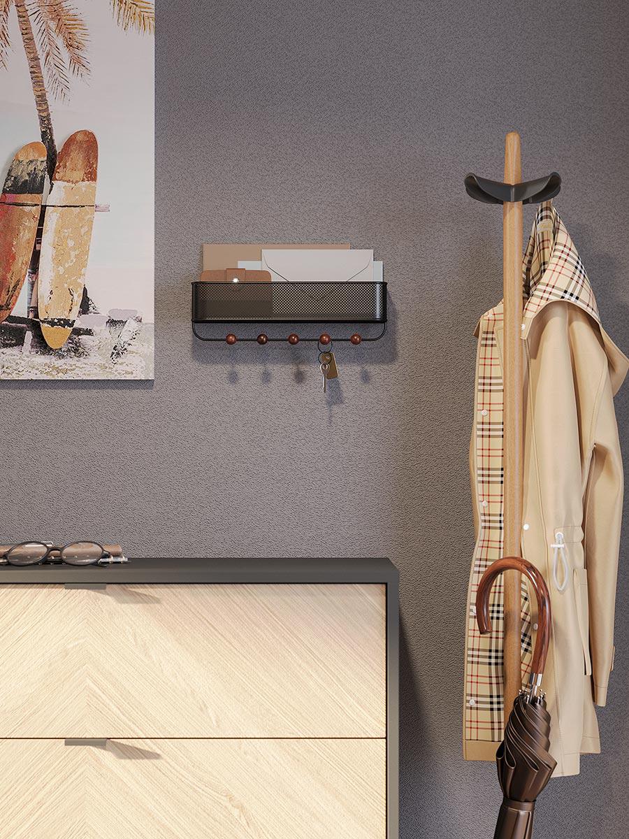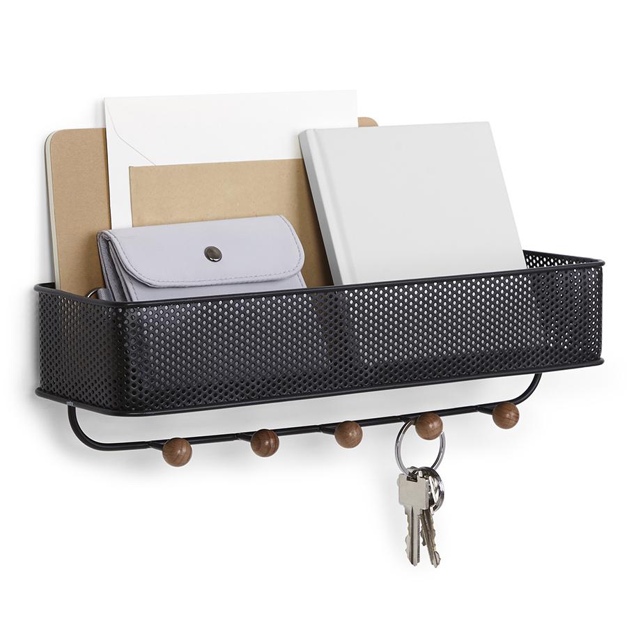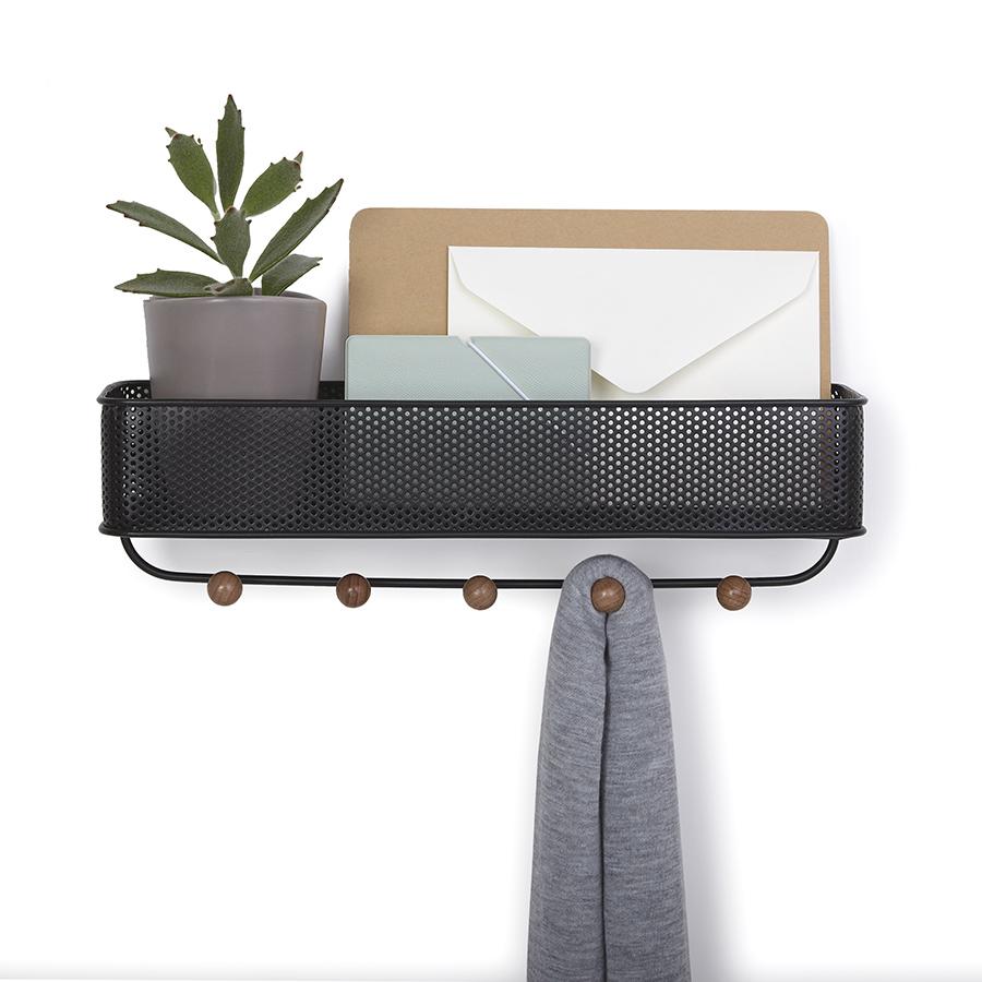 Вешалка-органайзер прекрасно подойдет для хранения не только одежды и аксессуаров, а также квитанций, ключей и других предметов. Настенный органайзер выполнен из перфорированного металла и натуральной древесины бука. Каждый крючок выдерживает нагрузку до 2,3 кг. В комплект поставки входит крепеж, что делает установку простой и быстрой. Материалы: сталь, бук, полиэстер. Размеры: 32х9х9 см. Пыль и загрязнения с поверхностей можно удалять при помощи мягкого влажного материала. После очищения вешалку рекомендуется протереть сухой салфеткой. Запрещается использование абразивов и агрессивной бытовой химии.