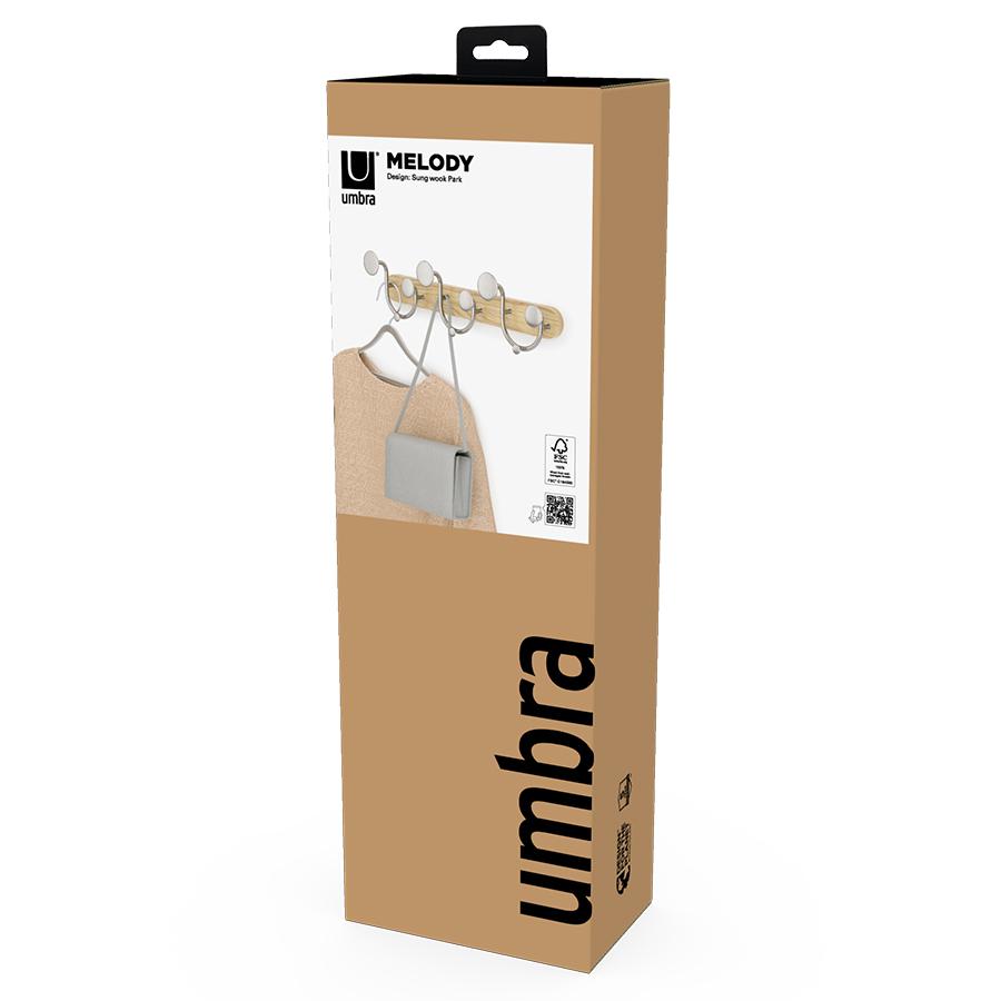 Вешалка Umbra Вешалка настенная melody, натуральное дерево/никель арт. 1019559-392