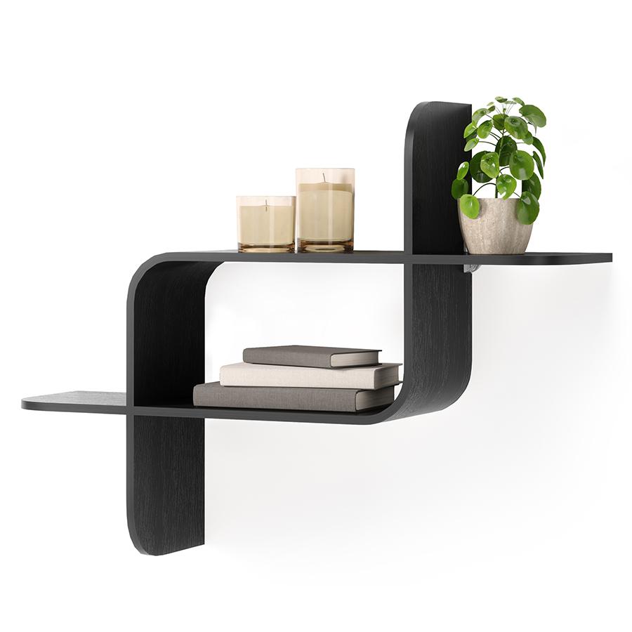 Полка Montage – великолепное сочетание современного дизайна и натуральных материалов. За счет уникальной изогнутой формы образуется четыре поверхности, которые можно задействовать под книги, декор, комнатные растения и прочее. В зависимости от особенностей интерьера, конструкцию можно крепить на стене как горизонтально, так и вертикально. Мебель из дерева наполняет пространство природным теплом и отлично интегрируется в различные стилевые решения. Полка подходит для прихожей, гостиной, спальни, кабинета, офиса. Материалы: каучуковое дерево, бук. Размеры: 62х15х47 см. Вес: 1,63 кг. Максимальная нагрузка: 6,8 кг. Цвет: черный. Пыль и загрязнения с поверхностей можно удалять при помощи мягкого влажного материала. После очищения полку рекомендуется протереть сухой салфеткой.