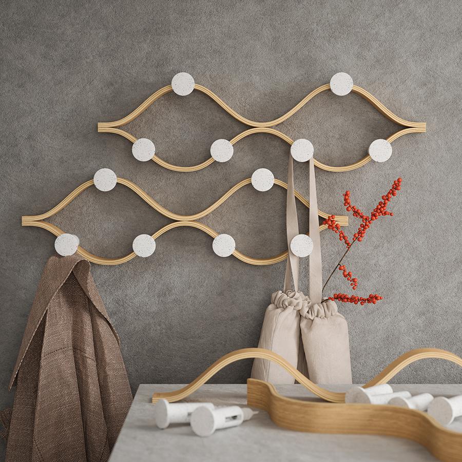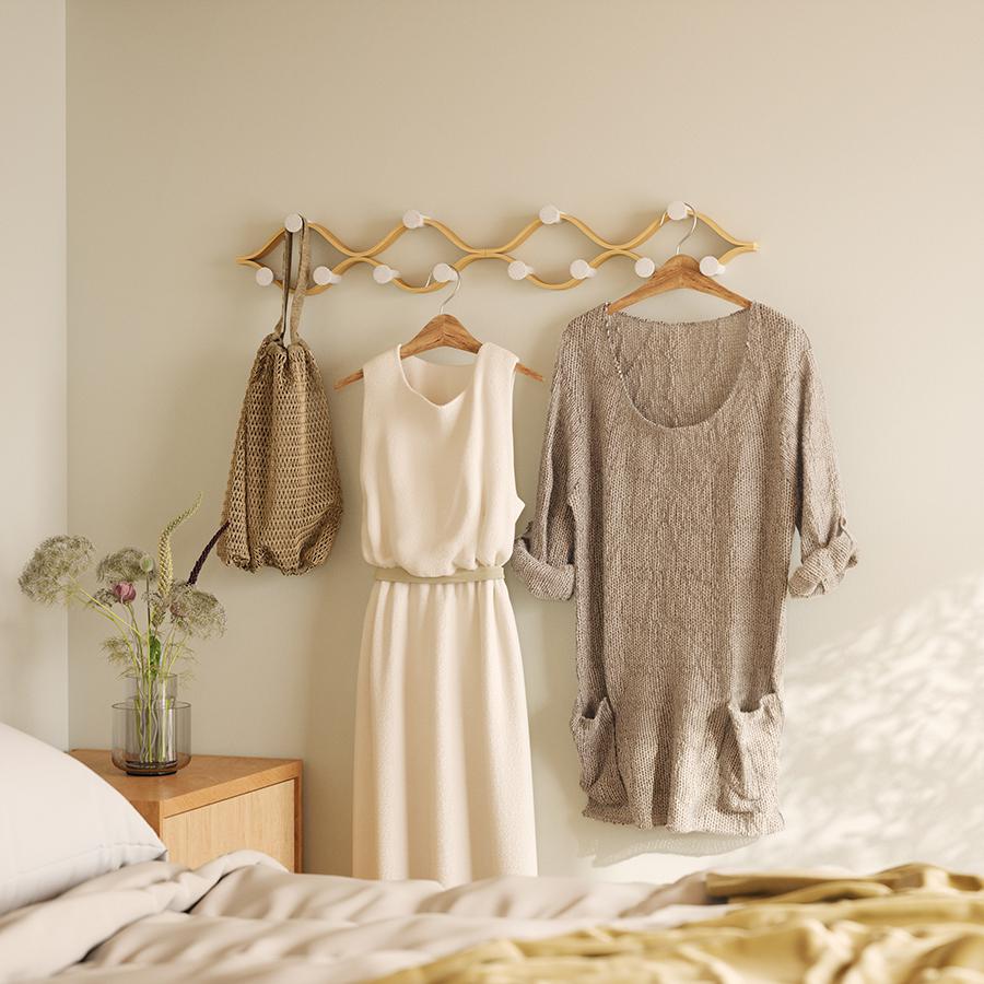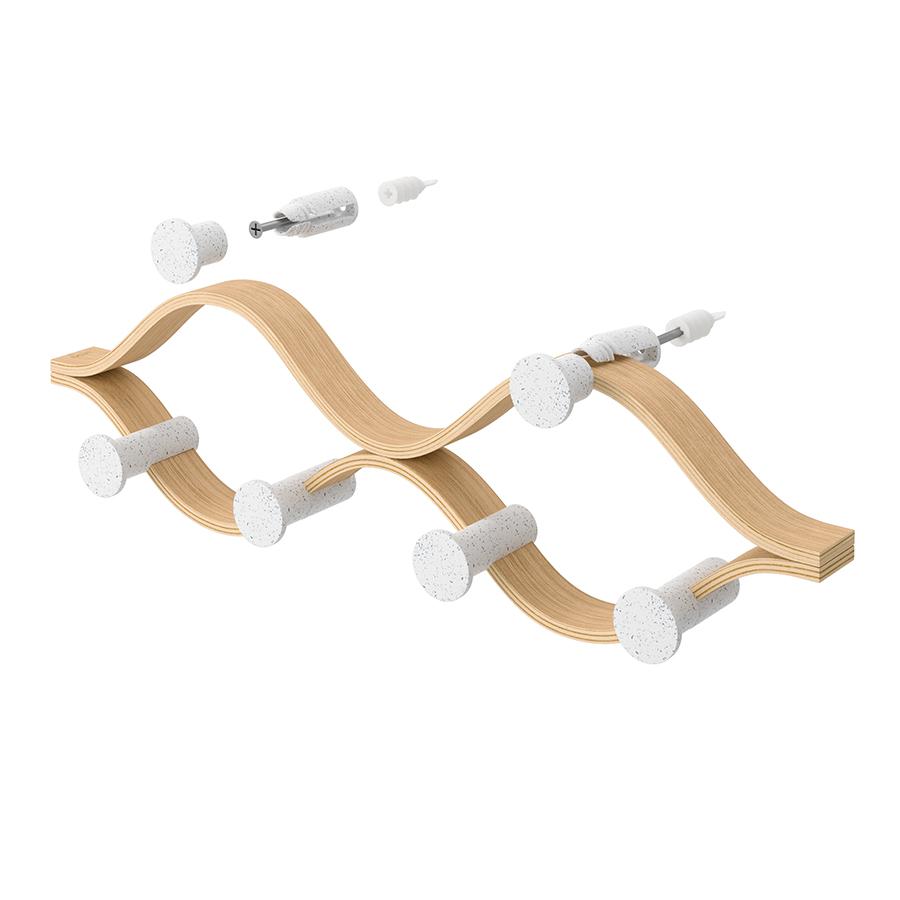 Вешалка настенная Montage идеально подойдет для компактного хранения вещей в любой из комнат и станет стильным акцентом интерьера. Сочетание дерева и элементов из металла придает аксессуару современный, но в то же время естественный вид. Вешалка оснащена шестью крючками, на которых можно удобно размещать предметы одежды, головные уборы, шарфы, сумки и другие аксессуары. Изготовленный из возобновляемых источников древесины, аксессуар одновременно стильный и экологически чистый. Материалы: сталь, береза, ясень, полипропилен. Размеры: 51х6х15 см. Максимальная нагрузка: 13,6 кг. Цвет: натуральное дерево/белый. Пыль и загрязнения с поверхностей можно удалять при помощи мягкого влажного материала. Запрещается использование абразивов и агрессивной бытовой химии.