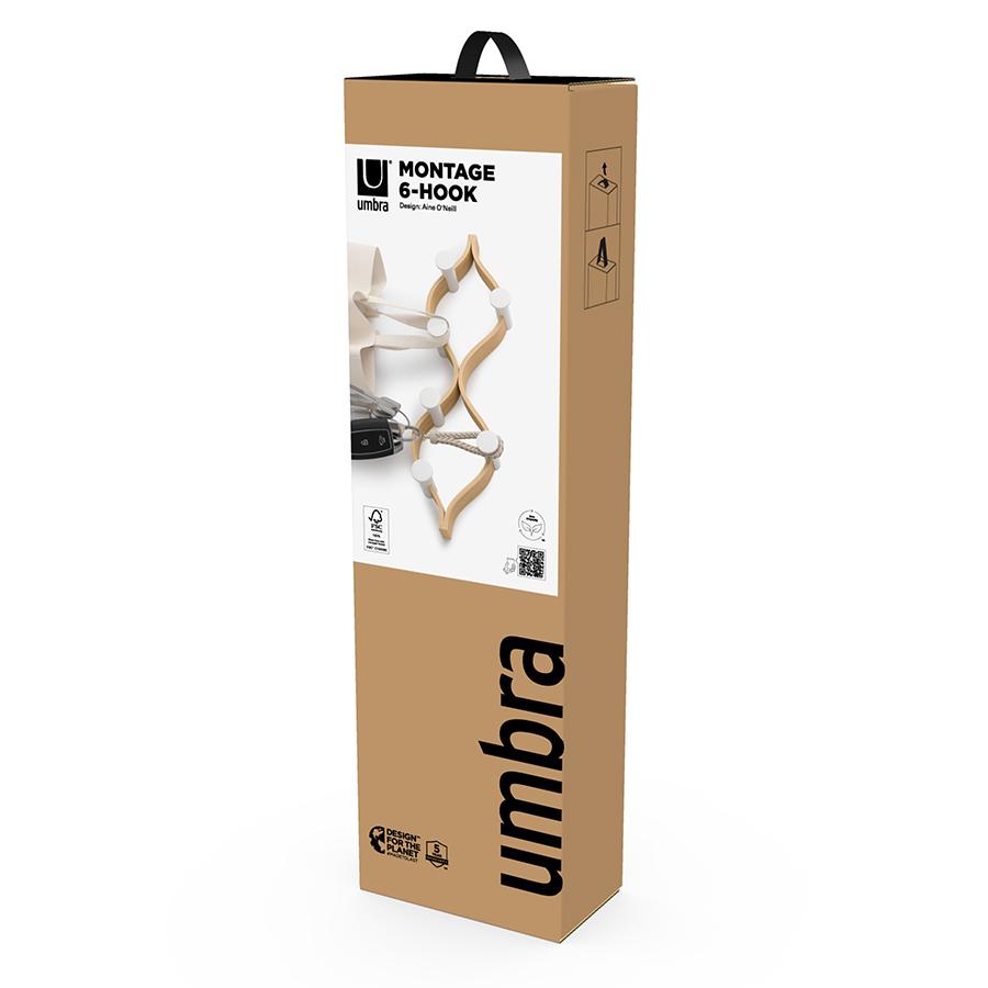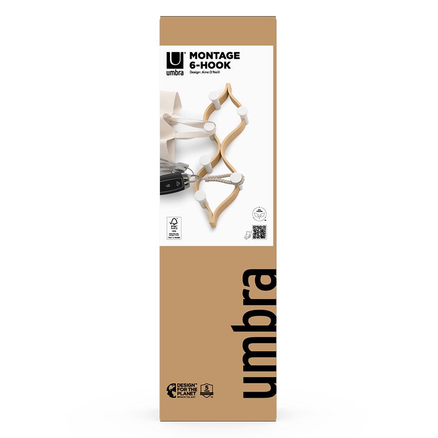 Вешалка Umbra Вешалка настенная montage, 6 крючков, натуральное дерево/белая арт. 1021053-668
