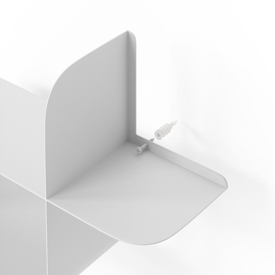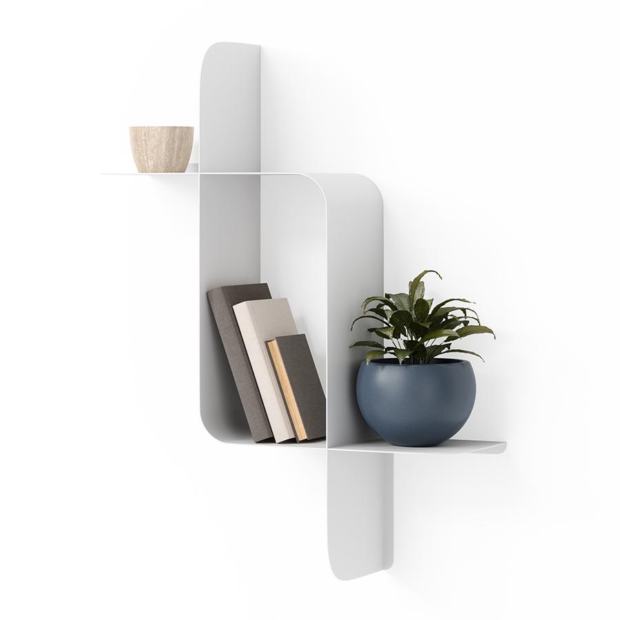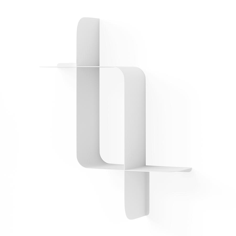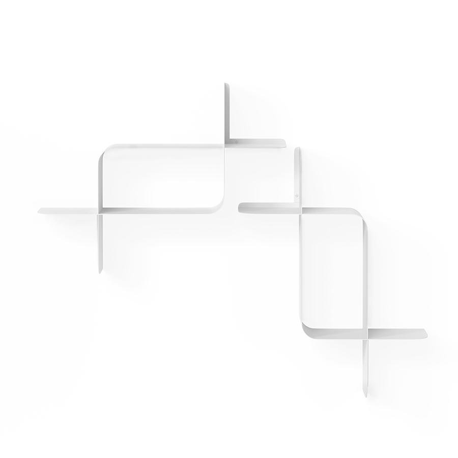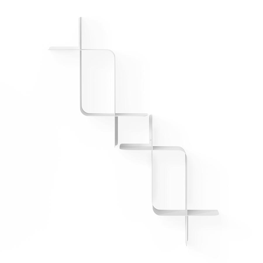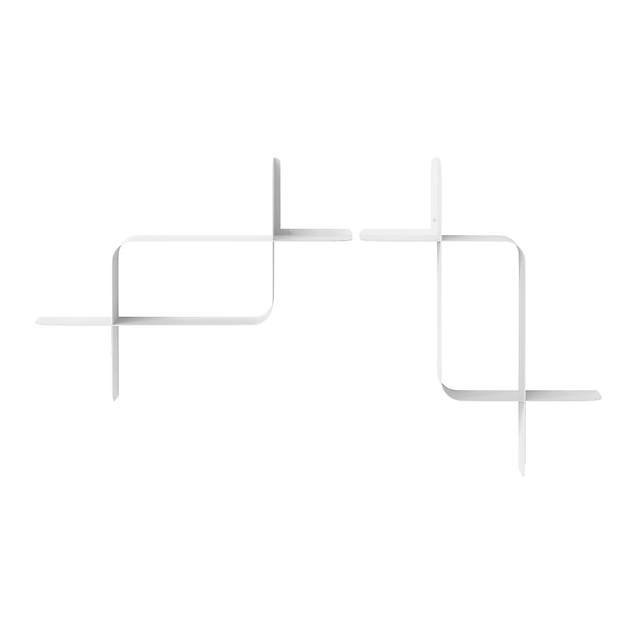 Набор из двух металлических настенных полок Montage идеально подойдет для компактного хранения вещей в любой из комнат и станет стильным акцентом интерьера. За счет уникальной изогнутой формы образуется восемь поверхностей, которые можно занять под книгами, декором, комнатными растениями. В зависимости от особенностей интерьера, конструкцию можно крепить на стене как горизонтально, так и вертикально. Предметы отлично интегрируются в различными стилевыми решениями. Полки подходят для прихожей, гостиной, спальни, кабинета, офиса. Материалы: сталь. Размеры: 61х15х47 см. Максимальная нагрузка: 6,8 кг. Цвет: белый. Пыль и загрязнения с поверхностей можно удалять при помощи мягкого влажного материала. Запрещается использование абразивов и агрессивной бытовой химии.