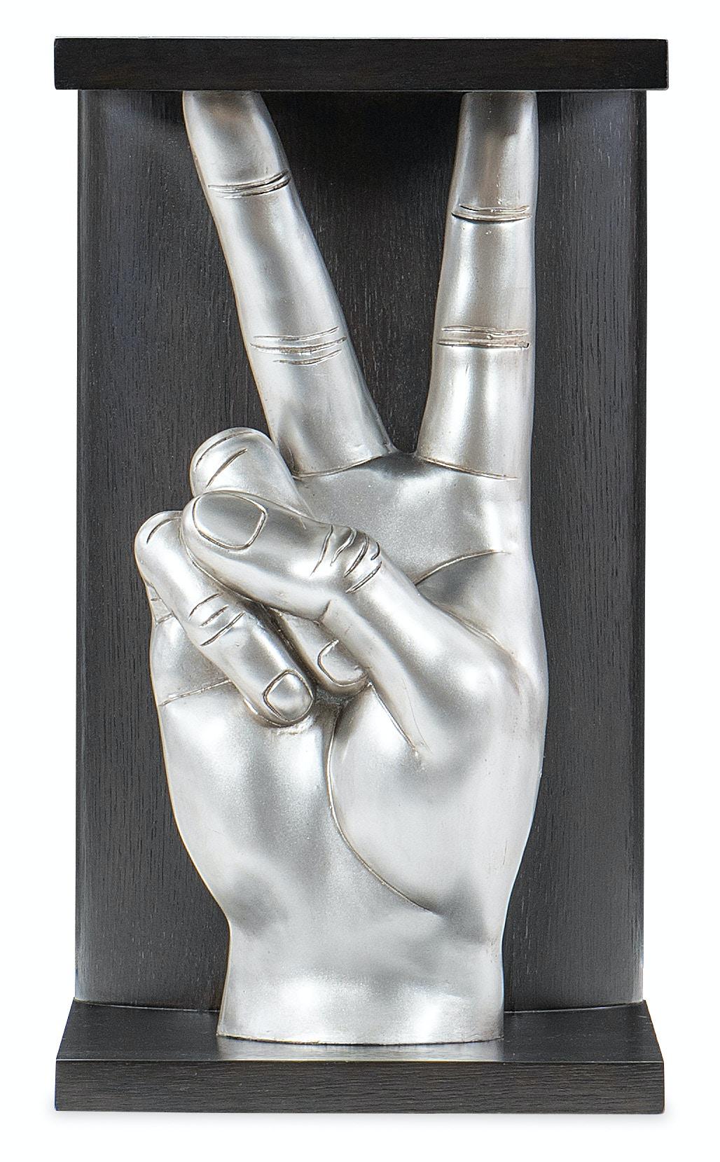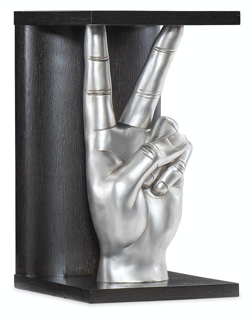 Довольно необычный вариант придиванного столика, выполненного в современном стиле. Стол украшает рука со знаком мира. Такой стол несомненно станет отличным украшением обстановки, и с легкостью сыграет роль этакого акцента в интерьере. Изготовлен стол из шпона. Отличный выбор для тех, кто ищет интересные и стильные решения для своего дома.