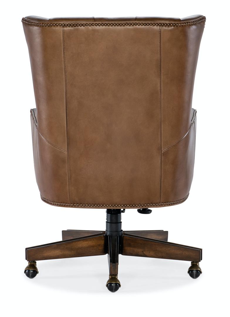 Шикарное офисное кресло, выполненное в традиционном стиле. Основание кресла выполнено из темного дерева, материал обивки - кожа. Кресло дополнительно декорировано пуговицами - ими украшена спинка, и аккуратными гвоздиками. Такое кресло несомненно сумеет не просто вписаться практически в любой интерьер, но и станет его настоящим украшением. Оснащено роликами.