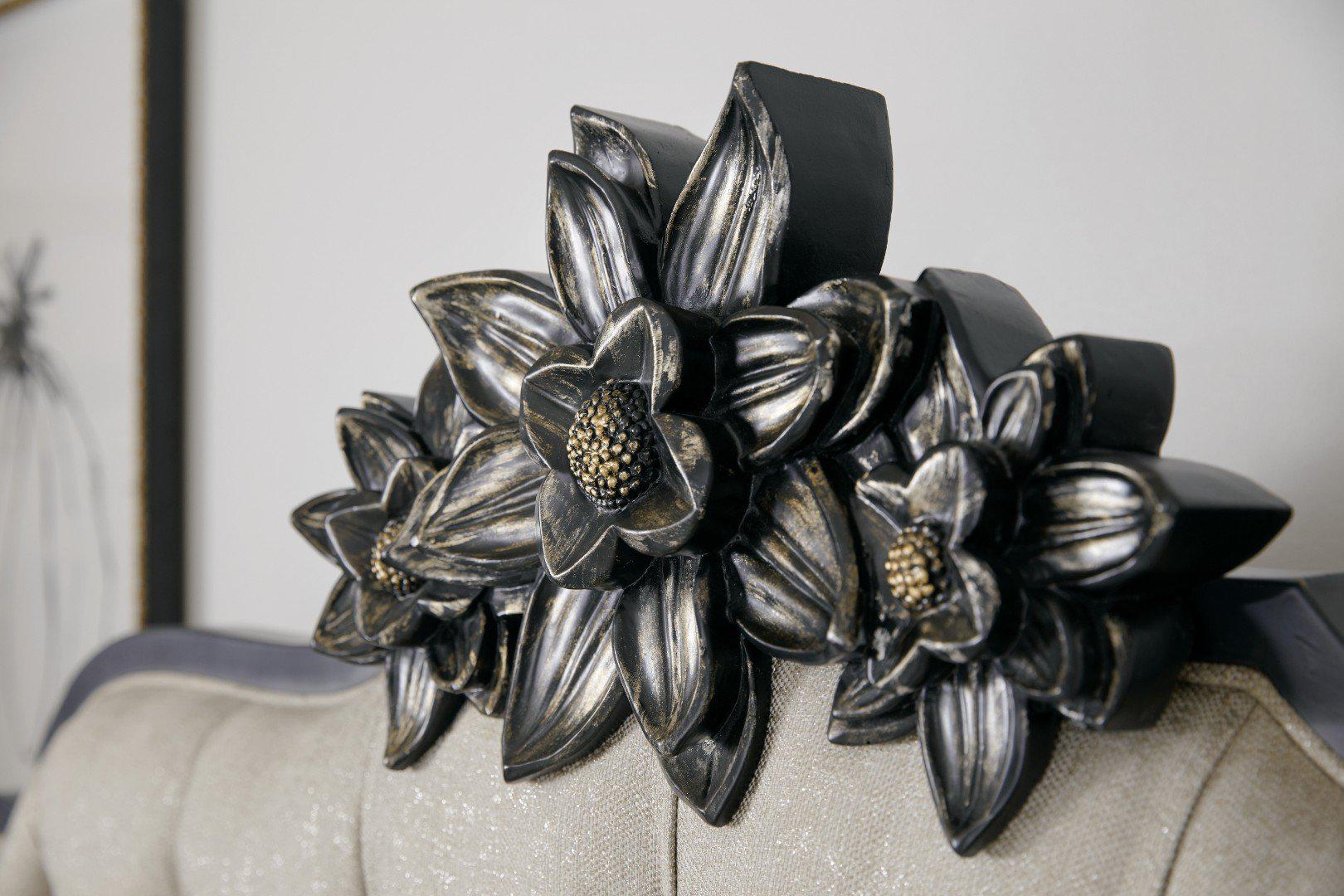 Стильная кровать размера King с мягким изголовьем и чудесным цветочным медальоном в качестве украшения изголовья. Сама кровать изготовлена из тополя и твердых пород дерева с дубовыми винирами. Изголовье обито высокопрочной тканью, устойчивой к пятнам и легко очищаемой. Кровать выполнена в сдержанно винтажном стиле и способна украсить собой любую спальню.