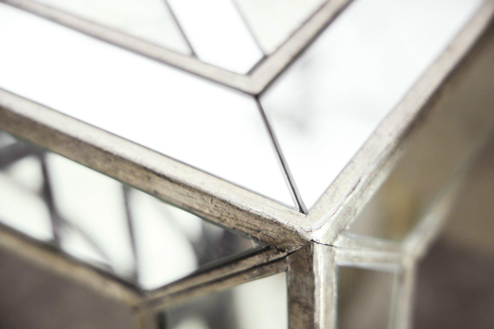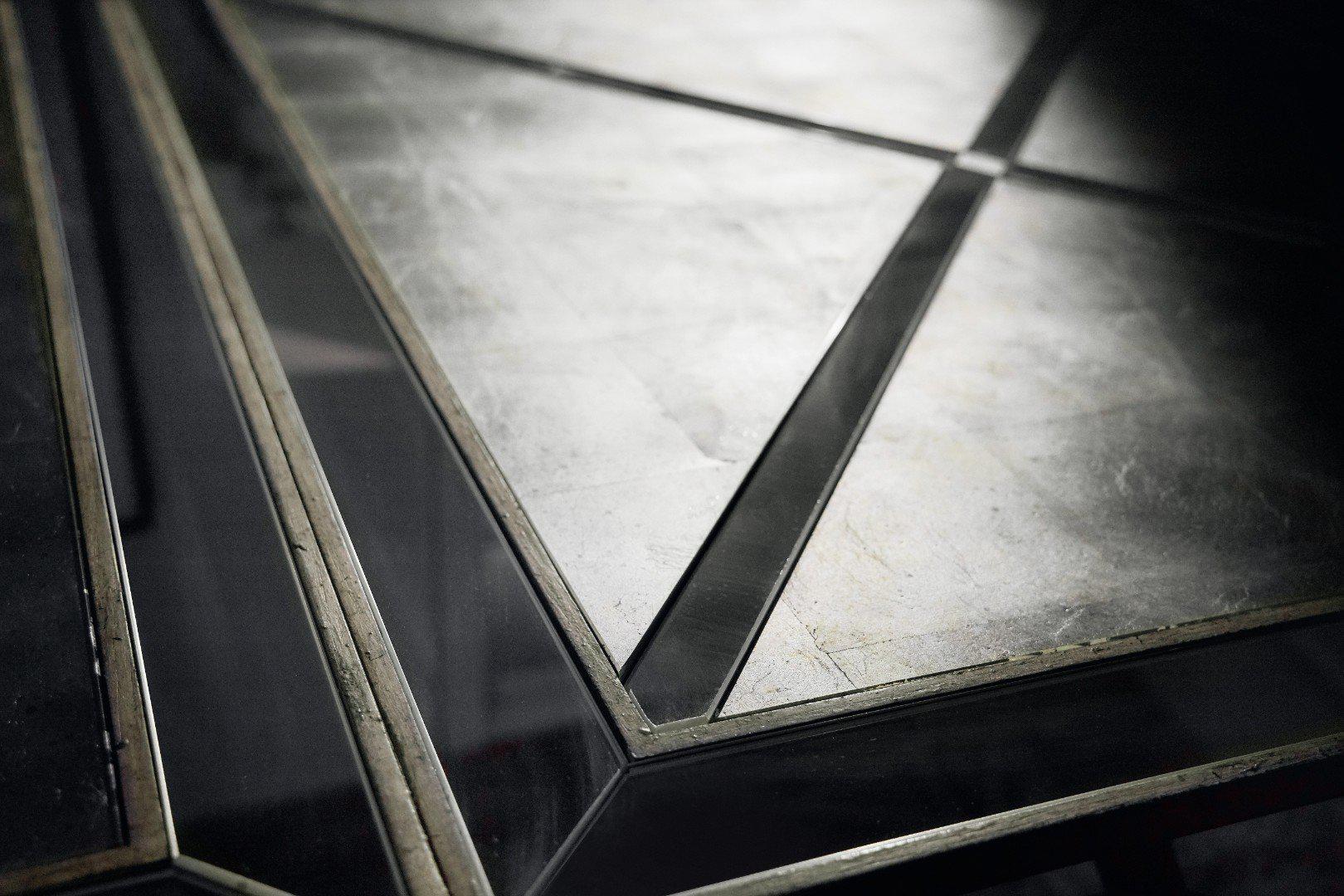 Изысканный раздвижной обеденный стол просто превосходен. Изысканный в своей простоте, и простой в своей изысканности, этот стол станет главным украшением вашей столовой. Благодаря дополнительным вкладкам позволит вам разместить большое количество гостей за одним столом. В полностью разложенном варианте вмещает до восьми человек. Край и наружные части ножек стола покрыты серебряным листовым стеклом с оттенками шампанского, внутренние части ножек изготовлены из тополя. Интересный дизайн столешницы добавляет столу особенное очарование.