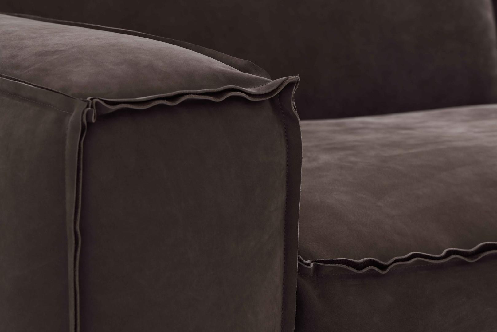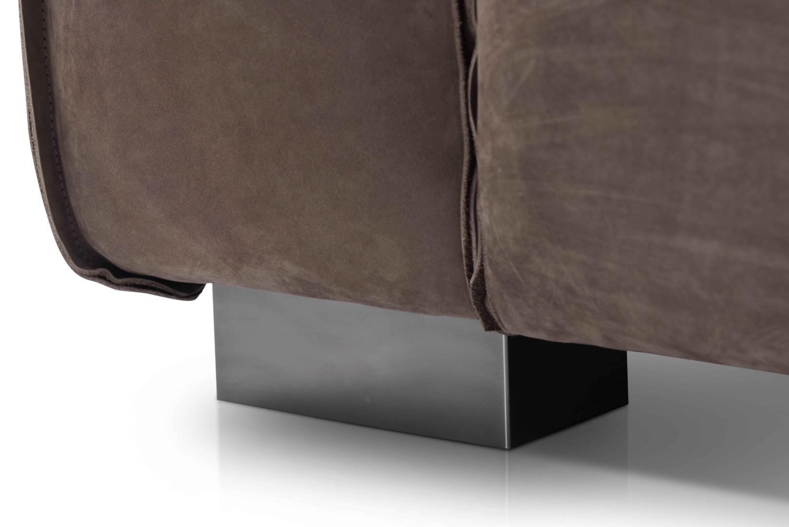 Интересный вариант дивана в современном стиле. Каркас дивана, как и его ножки с основанием изготовлены из дерева. Для обивки используется итальянский нубук наивысшего качества. Диван выглядит очень элегантно и стильно, и несомненно сумеет не только гармонично вписаться в интерьер вашего дома, но и вполне заслуженно стать его украшением.