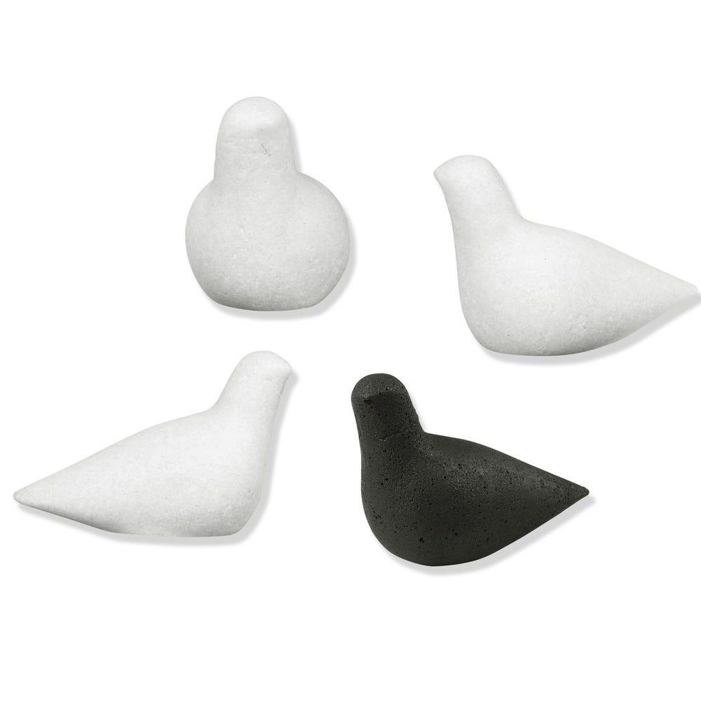 Элегантная и изящная стая птиц выполнена из богатого искусственного камня, который точно воспроизводит текстуру тасосского мрамора и чёрного вулканического камня. Эта стая может красиво расположиться на любой горизонтальной поверхности или стать украшением ваших любимых полок.