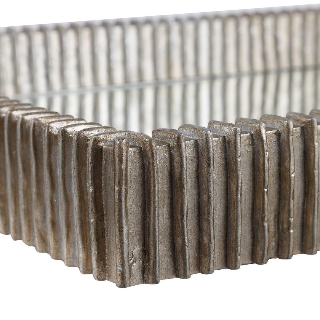 Чудесный поднос, способный прийтись по вкусу многим. Поднос отличается органической ребристой текстурой, отделанной сусальным серебром, и зеркальным основанием. Такой поднос сумеет привнести в обстановку нотки особого стиля и некоего изыска. Отличный вариант для подарка.